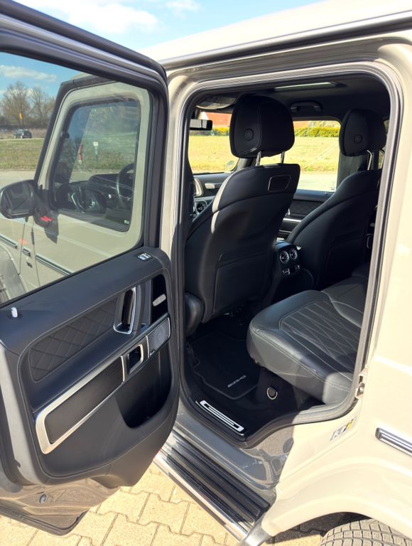 Die G manufaktur Lackierung in Classicgrau verleiht dem Fahrzeug eine besonders hochwertige und zugleich markante Ausstrahlung. In Verbindung mit AMG Line, Night Paket und Night Paket II sowie den schwarzen 20-Zoll-AMG-Leichtmetallrädern ergibt sich ein sehr stimmiges und hochwertiges Gesamtbild.
