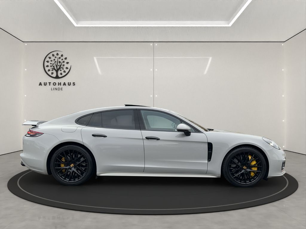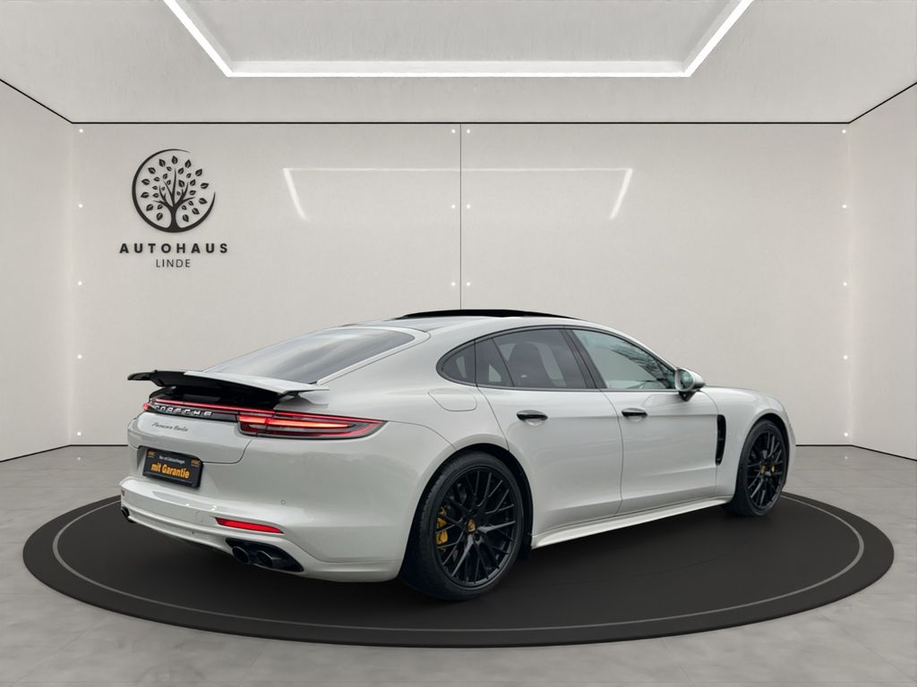 Airbag Fahrer-/Beifahrerseite, Aktive Motorhaube, Antischlupfregelung (ASR), Antriebsart: Allradantrieb, Außenspiegel asphärisch, links, Außenspiegel elektr. anklappbar, Außenspiegel elektr. verstell- und heizbar, Außenspiegel mit Abblendautomatik, Außenspiegel mit Umfeldleuchte LED, Bremssättel Rot lackiert, Connect Plus (Bluetooth, Apple CarPlay, WLAN, Vehicle-Tracking-System), Dachhimmel Alcantara, Diebstahl-Warnanlage mit Innenraumüberwachung, Einschaltautomatik für Fahrlicht, Einstiegsblenden (Aluminium), Frontscheibe mit Bandfilter oben, Fußmatten, Gepäckraumabdeckung / Rollo, Getriebe 8-Gang - Doppelkupplungsgetriebe (PDK), Getränkehalter, Heckklappe mit automatischem Öffnungs- und Schließsystem, Heckleuchten LED, Heckspoiler adaptiv ausfahrbar (4-Wege), Innenausstattung: Glattleder, Serienlederfarbe, Innenraumfilter: Aktivkohlefilter (Geruchsfilter), Innenspiegel mit Abblendautomatik, Interieur-Paket: Holz, Interieur-Paket: Holz, Nussbaumwurzel, Isofix-Aufnahmen für Kindersitz an Rücksitz, Karosserie: 4-türig, Knieairbag, Komfortsitze vorn inkl. Sitzverstellung 14-Wege und Memory-Paket, Komfortzugang (Schlüssellose Türentriegelung), Kopf-Airbag-System (Curtain-Airbag), Kraftstofftank: 90 Ltr., Metallic-Lackierung, Motor 4,0 Ltr. - 404 kW V8 Turbo KAT, Parkbremse elektrisch, Porsche Communications Management (PCM) inkl. Online - Navigationsmodul, Porsche Traction Management (PTM), Radstand kurz, Reifen-Reparaturkit, Reifendruck-Kontrollsystem, Rücksitzlehne geteilt/klappbar (60:40), Schadstoffarm nach Abgasnorm Euro 6, Seitenairbag vorn, Sonnenblenden mit Spiegel (beleuchtet), Sound-System BOSE, Start/Stop-Anlage, Tagfahrlicht 4-Punkt-LED, Turbo, USB-Anschlüsse im Fond (nur Ladefunktion), Verglasung getönt,Approved Garantie nicht vorhanden,US-Import/Deutsche Zulassung