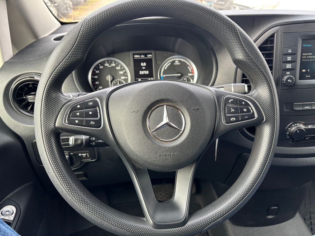 3. Bremsleuchte, Adaptives Bremslicht, Airbag Beifahrerseite, Airbag Fahrerseite, Akustischer Umfeldschutz (Außensound), Anfahrhilfe (Berganfahr-Assistent), Außenspiegel asphärisch, beide, Außentemperaturanzeige, Bremsassistent, Bremssystem mit ABS+ASR, Elektromotor 85 kW (cont. 70 kW), Fahrassistenz-System: aktiver Bremsassistent, Fahrassistenz-System: Attention-Assist (Müdigkeitserkennungs-Sensor), Fahrassistenz-System: Pannenmanagement, Fahrassistenz-System: Seitenwind-Assistent, Getriebe für Elektrofahrzeug, Getränkehalter vorn, Gurtstraffer, Handschuhfach abschließbar, HV-Batterie 60 kWh, Karosserie/Aufbau: Kasten Standard, Karosserie/Aufbau: lang, Kommunikationsmodul (LTE) für digitale Dienste, Ladeleistung HV-Batterie 11 kW (Wechselstrom AC), Lenkrad (Lenksäule mech. verstellbar), Leuchtweitenregelung, Mercedes-Benz Notrufsystem, Modellpflege, Nebelschlussleuchte, Radstand 3200 mm, Schiebetür Lade-/Fahrgastraum rechts, Servolenkung elektro-mechanisch, Sicherheitsgurt-System mit Warnanlage (Fahrer-/Beifahrerseite), Sitzbezug / Polsterung: Stoff Caluma, Sitze im Fahrerhaus: Fahrersitz heizbar, Sitze im Fahrerhaus: Fahrersitz verstellbar, Stahlfelgen 6,5x17, Steckdose (12V-Anschluß) im Fahrerhaus, Verkleidung im Lade-/FG-Raum: Hartfaser halbhoch, Vlies-Batterie 92 Ah, Wartungsintervall-Anzeige Assyst, Wärmeschutzverglasung, Zul. Gesamtgewicht 3,20 t