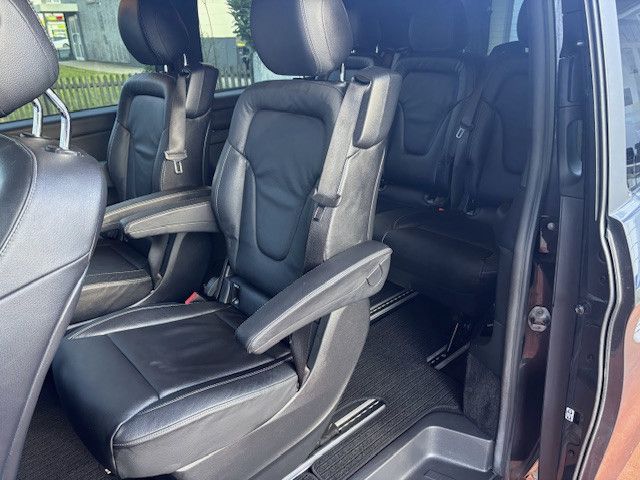 Sonderausstattung:Ablagenetz an Vordersitzlehne links, Ambiente-Beleuchtung Armaturentafel, Anhängelast 2500 kg, Dachreling (Aluminium eloxiert), Dachverkleidung / Innenhimmel Stoff schwarz, Design-Paket Interieur, Fahrassistenz-System: Verkehrs-Informations-System Live Traffic, Fahrassistenz-System: Verkehrszeichenerkennung, Fenster im Lade-/FG-Raum: - elektr. ausstellbar, hinten links/rechts, Fernbedienung für Zusatzheizung, Gepäcksicherungsnetz, Heckklappe mit automatischem Öffnungs- und Schließsystem, Heckscheibe aufstellbar, Hold-Funktion, Innenausstattung: Zierteile Doppelstreifen Optik, Intelligent Light System LED, Klimaautomatik Fond (Tempmatik), Komfort-Klimaautomatik Thermotronik, Kraftstofftank: vergrößert, LM-Felgen 7x17 (Aero-Rad), Metallic-Lackierung, Mittelkonsole vorn mit Rollo / Ablage, Navigationssystem für Multimediasystem MBUX, Navigationssystem Plus für Multimediasystem MBUX, Park-Paket, Reserverad mit Wagenheber, Scheibenwaschanlage beheizt, Schiebetür Lade-/Fahrgastraum links, Schiebetür links elektrisch, Schiebetür rechts elektrisch, Sitze im Fahrerhaus: Fahrersitz heizbar, Sitze im Fahrerhaus: Fahrersitz mit Lendenwirbelstütze, Sitze im Lade-/FG-Raum: 2.Reihe, 3er-Sitzbank Komfort, Smartphone-Integration (Apple CarPlay und Android Auto), Spiegel-Paket, Sport-Fahrwerk, Sport-Paket Exterieur, Spur-Paket, Steckdosen (12V-Anschluß) im Lade-/Fahrgastraum, 2-fach, Verglasung hinten abgedunkelt / Schwarzglas, Vorbereitung Navigationssystem (für Multimediasystem MBUX), Zusatzheizung (Warmwasser)