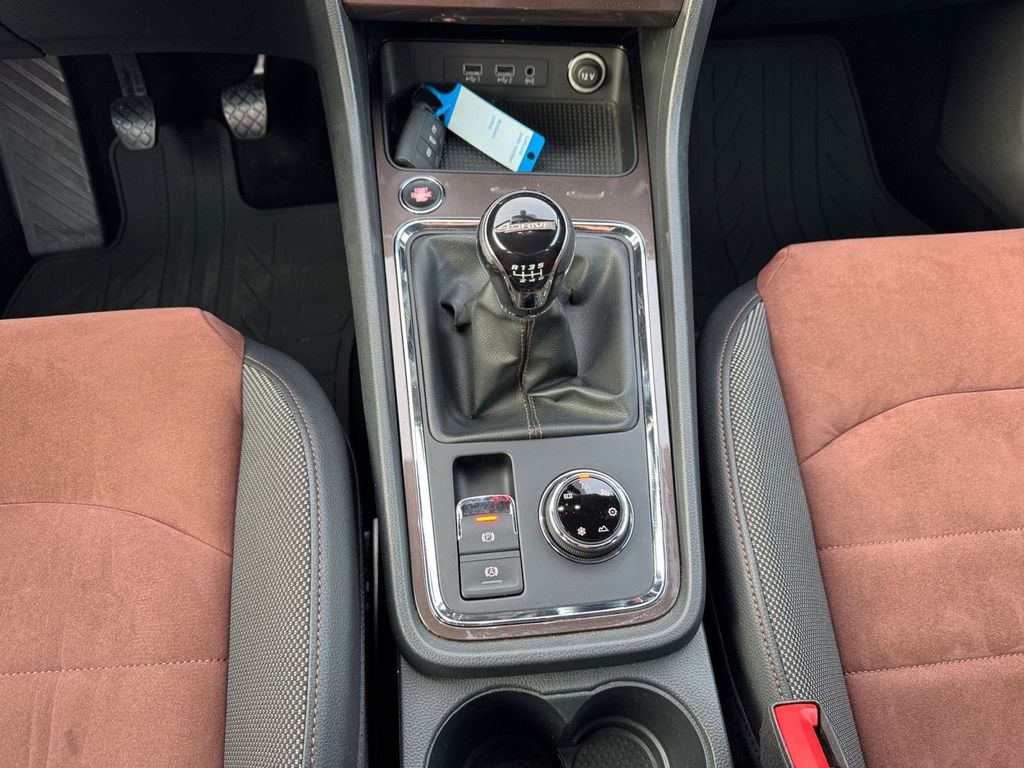 3. Bremsleuchte, Airbag Beifahrerseite abschaltbar, Airbag Fahrer-/Beifahrerseite, Antriebs-Schlupfregelung (ASR), Antriebsart: Allradantrieb, AUX-IN-Anschluss und 2 x USB-Anschluss, Außenspiegel elektr. verstell-, heiz- und anklappbar mit Spiegelabsenkung und Welcome Light, Außenspiegel elektr. verstell-, heiz- und anklappbar, beide, Außenspiegel lackiert, Außenspiegel und Türgriffe außen in Wagenfarbe, Blinkleuchte in Außenspiegel integriert, Bordcomputer, Bremsassistent, Chrom-Paket, Dachhimmel schwarz, Doppeltonhorn, Einparkhilfe hinten, Fahrassistenz-System: Berganfahr-Assistent (Hill-Holder), Fahrassistenz-System: Fahrprofilauswahl (SEAT Drive Profile), Fahrassistenz-System: Müdigkeitserkennung, Fahrassistenz-System: Umfeldbeobachtungssystem (Front assist) mit City-Notbremsfunktion, Fensterheber elektrisch vorn + hinten, Fußraumbeleuchtung vorn, Gepäckraumabdeckung / Rollo, Handschuhfach beleuchtet, Heckleuchten LED, Innenausstattung: Chrom-Applikationen, Innenraumlicht-Paket LED, Isofix-Aufnahmen für Kindersitz, Karosserie: 5-türig, Klimaanlage Climatronic 2-Zonen, Knieairbag Fahrerseite, Komfortsitze, Kopf-Airbag-System, Kopfstützen hinten (3-fach), Kopfstützen vorn, Lendenwirbelstütze Sitz vorn links, verstellbar, Lendenwirbelstütze Sitz vorn rechts, verstellbar, Lendenwirbelstütze verstellbar, Lenkrad (Sport/Leder) mit Multifunktion, Licht- und Sicht-Paket, LM-Felgen, Mittelarmlehne hinten, Mittelkonsole vorn mit Mittelarmlehne, Becherhalter, Ablagebox und Luftausströmer hinten, Motor 2,0 Ltr. - 110 kW TDI, Parkbremse elektrisch, Radstand 2630 mm, Reifenkontroll-Anzeige, Rückfahrkamera, Rücksitzlehne klappbar, Rücksitzlehnen umklappbar mit Fernentriegelung im Kofferraum, Schadstoffarm nach Abgasnorm Euro 6, Schalt-/Wählhebelgriff Leder, Scheinwerfer LED, Schließ-/Startsystem Kessy, Seitenairbag, Seitenscheiben hinten und Heckscheibe abgedunkelt, Sitz vorn links höhenverstellbar, Sitz vorn rechts höhenverstellbar, Sitzbezug / Polsterung: Leder / Alcantara, Start/Stop-Anlage, Stau-/Ablagefach unter Sitz vorn links, Steckdose (12V-Anschluß) vorn, Verglasung getönt, Verzurrösen Koffer-/Laderaum, Wärmeschutzverglasung