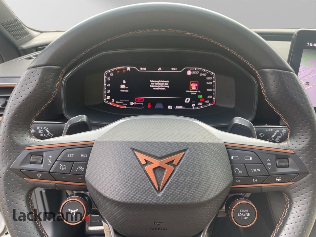 - Weiteres: Antriebs-Schlupfregelung (ASR), Leuchtweitenregelung automatisch, Sitzbezug / Polsterung: Stoff, Antriebsart: Allradantrieb, Reserverad als Notrad, Isofix-Aufnahmen für Kindersitz an Rücksitz, Getriebe 7-Gang - Doppelkupplungsgetriebe DSG, Rücksitzlehne geteilt/klappbar (1/3-2/3), Außenspiegel elektr. verstell-, heiz- und anklappbar mit Spiegelabsenkung und Welcome Light, Lendenwirbelstütze Sitz vorn rechts, verstellbar, Notrufsystem, Nebelscheinwerfer LED mit Abbiegelicht, Rücksitzlehnen umklappbar mit Fernentriegelung im Kofferraum, Schadstoffarm nach Abgasnorm Euro 6d, LM-Felgen, USB-Schnittstelle vorn (2-fach, Typ C), Seitenairbag vorn mitte (Central Airbag), Zentralverriegelung / Startanlage Keyless Go (Start-Stop-Knopf), Lenkrad heizbar (CUPRA Supersport, Leder) mit Multifunktion und Schaltfunktion, Heckleuchten Voll-LED mit Lichtband (Infinite Light), Audio-Navigationssystem mit Touchscreen Farbbildschirm, Scheinwerfer Voll-LED, Schließ-/Startsystem Kessy Advanced, Airbag Fahrer-/Beifahrerseite, Anti-Blockier-System (ABS), Tagfahrlicht LED, Wegfahrsperre (elektronisch), Kopf-Airbag-System, Gepäckraumabdeckung / Rollo, Licht- und Regensensor, Reifenkontroll-Anzeige, Seitenairbag, Dachreling schwarz, hochglänzend, Heckleuchte im Laderaum, Adaptive Fahrwerksregelung (DCC), Autom. Distanzregelung (ACC / PCC) mit vorausschauender Geschw.-Regelung, Automatische Distanzregelung (ACC), Beifahrerairbag abschaltbar, Blinkleuchten LED in Außenspiegel integriert, Climatronic 3-Zonen, Diebstahl-Warnanlage mit Innenraumüberwachung und Abschleppschutz, Dynamic-Paket, Einstiegsleisten (Aluminium) vorn, beleuchtet, Elektron. Differentialsperre (XDS), Elektron. Stabilitätskontrolle (ESC), Fahrassistenz-Paket XL, Fahrassistenz-Paket: Stau- und Notfallassistent, Fahrassistenz-Paket: Travel Assist, Fahrassistenz-Paket: Vision Plus, Fahrprofilauswahl (CUPRA Drive Profile), Fensterheber elektrisch vorn und hinten mit Komfortschaltung, Fernlichtassistent, Frontkamera, getönte Scheiben - Privacy Glass, Innenspiegel mit Abblendautomatik, Kombiinstrument digital (virtual cockpit), Laderaumboden variabel, Lendenwirbelstütze, Licht- und Sicht-Paket, Lichtassistent (Coming Home, Leaving Home), Mittelarmlehne hinten, Motor 2,0 Ltr. - 228 kW 16V TSI, Müdigkeitserkennung, Parkbremse elektrisch, Parklenkassistent mit Einparkhilfe vorn und hinten inkl. Rückfahrkamera, Progressivlenkung, Radioempfang digital (DAB+), Servolenkung elektro-mechanisch, Sitzheizung vorn, Sitzhöhenverstellung, Sitzhöhenverstellung Fahrersitz, Sport-Schalensitze vorn, Spurhalteassistent, Start/Stop-Anlage, Totwinkel-Assistent mit Auspark-Assistent, Spurwechselassistent und Ausstiegswarnung, Umfeldbeobachtungssystem (Front assist) mit City-Notbremsfunktion