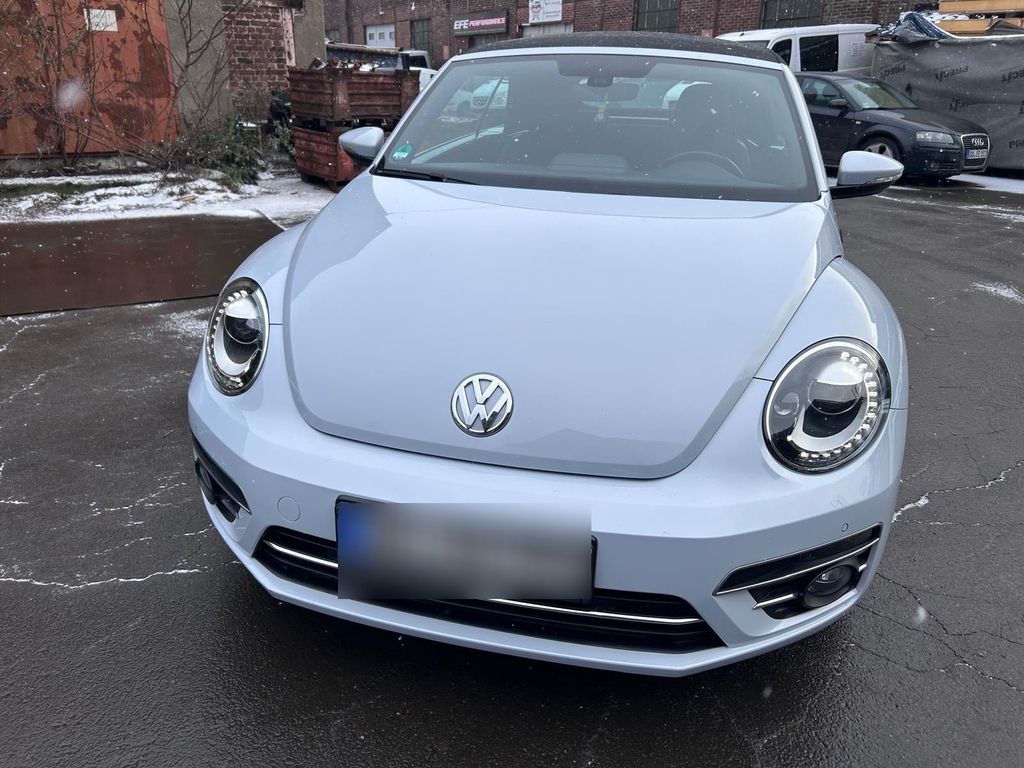 Zum Verkauf steht ein gepflegter VW Beetle Cabrio 1.4 TFSI aus 09/2017 aus 1. Hand mit einer originalen Laufleistung von 49.000 km. Das Fahrzeug befindet sich in einem sehr guten Zustand und wurde stets sorgfältig behandelt.Der Beetle überzeugt mit einer schönen Ausstattung, darunter elektrisches Verdeck, Rückfahrkamera, PDC, großes Soundsystem sowie Ambiente-Beleuchtung. Zudem verfügt er über LED- und Xenonlicht mit Kurvenlicht, 4 elektrische Fensterheber, Zentralverriegelung und 19 Zoll Alufelgen.