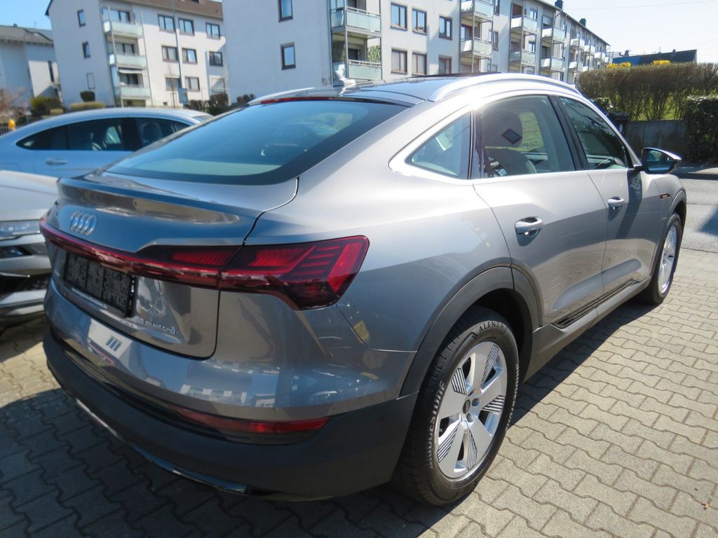 Airbag Beifahrerseite abschaltbar, Airbag Fahrer-/Beifahrerseite, Akustischer Fußgängerschutz, Außensound (e-sound), Audi connect (Internetbasierende Dienste), Audi connect (Notruf- und Assistance-System), Audi music interface, Außenspiegel Wagenfarbe, Bedienelemente schwarz matt, Blinkleuchten LED in Außenspiegel integriert, Diebstahlsicherung für Räder (Felgenschlösser), e-tron Aufladesystem, Einparkhilfe plus vorn, seitlich und hinten, akustisch und optisch mit Umgebungsanzeige, Einstiegsleisten mit Aluminiumeinlage und Schriftzug, beleuchtet, Elektromotor 300 kW (cont. 158 kW), Fahrassistenz-System: Bremsassistent (Audi pre sense front), Fahrassistenz-System: Insassen-Schutzsystem (Audi pre sense basic), Fahrassistenz-System: Spurverlassenswarnung, Fahrwerk (adaptive air suspension), Frontscheibe Akustikglas, Fußmatten Velours, Gepäckraumabdeckung / Rollo, Gepäckraumklappe elektr. betätigt (öffnen + schliessen), Getriebe für Elektrofahrzeug, Glanz-Paket, HV-Batterie 95 kWh brutto / 89 kWh netto, Innenausstattung: Dekoreinlagen Feinlack, Innenspiegel mit Abblendautomatik, Isofix-Aufnahmen für Kindersitz, Isofix-Aufnahmen für Kindersitz an Beifahrersitz, Karosserie: 4-türig, Komfort-Klimaautomatik 2-Zonen, Kopf-Airbag-System (Sideguard), Ladedose (AC / DC), Ladekabel 2,5 m (e-tron), Ladekabel für öffentliche Ladesäulen (e-tron), Ladekabel mit Industriestecker (16 A / 400 V), Ladekabel mit Schukostecker, Ladekabel mit Typ 2-Stecker (Mode 3), LM-Felgen, Multi-Media-Interface MMI Basic Plus / MMI Radio Plus, Multi-Media-Interface MMI Navigation Plus mit MMI Touch, Nichtraucher-Paket, On-Board-Ladegerät (bis 11 kW), Progressivlenkung, Radstand 2928 mm, Reifen-Reparaturkit, Reifenkontroll-Anzeige, Rücksitzlehne geteilt/klappbar (40:20:40), Seitenairbag vorn, Sitze vorn manuell einstellbar, Sound-System DSP / Audi Sound-System, Standklimatisierung, Steckdose (12V-Anschluß) 3-fach, Stoßfänger Ausführung: Basis, Universal-Schnittstelle Bluetooth, Wärmeschutzverglasung grün getönt, Zentralverriegelung / Startanlage Keyless-Go, App-Connect Wireless (Apple CarPlay, Android Auto, MirrorLink), Sitzheizung vorn, Innenspiegel automatisch abblendend