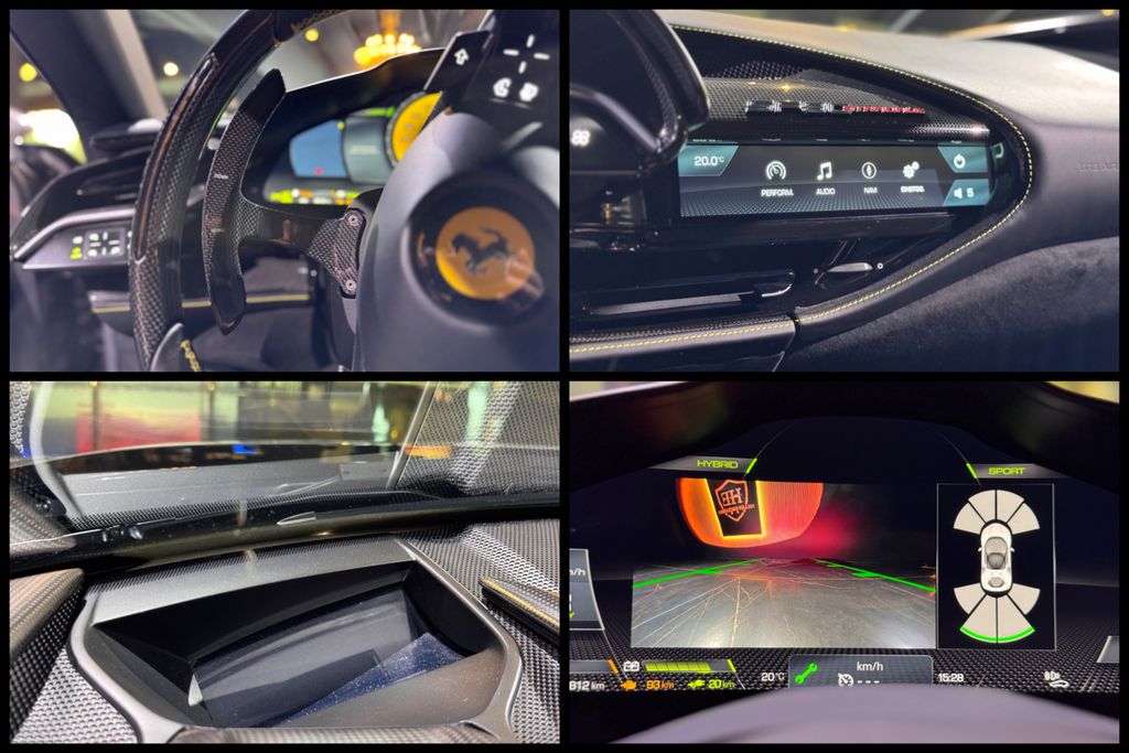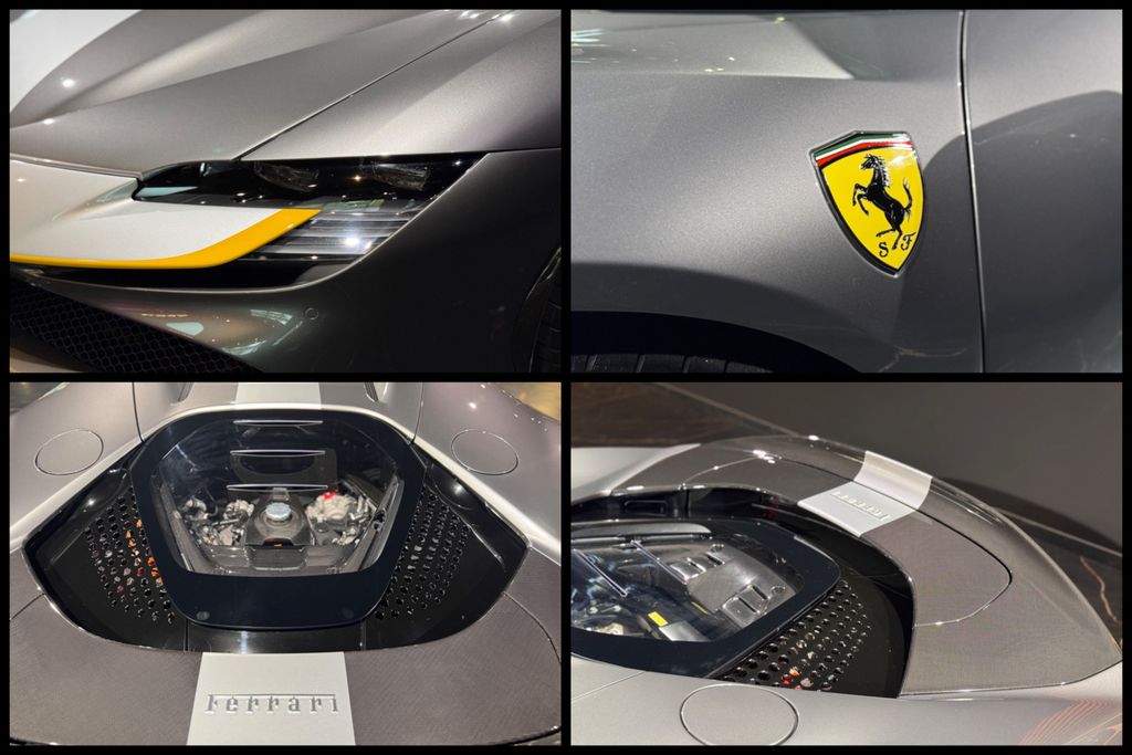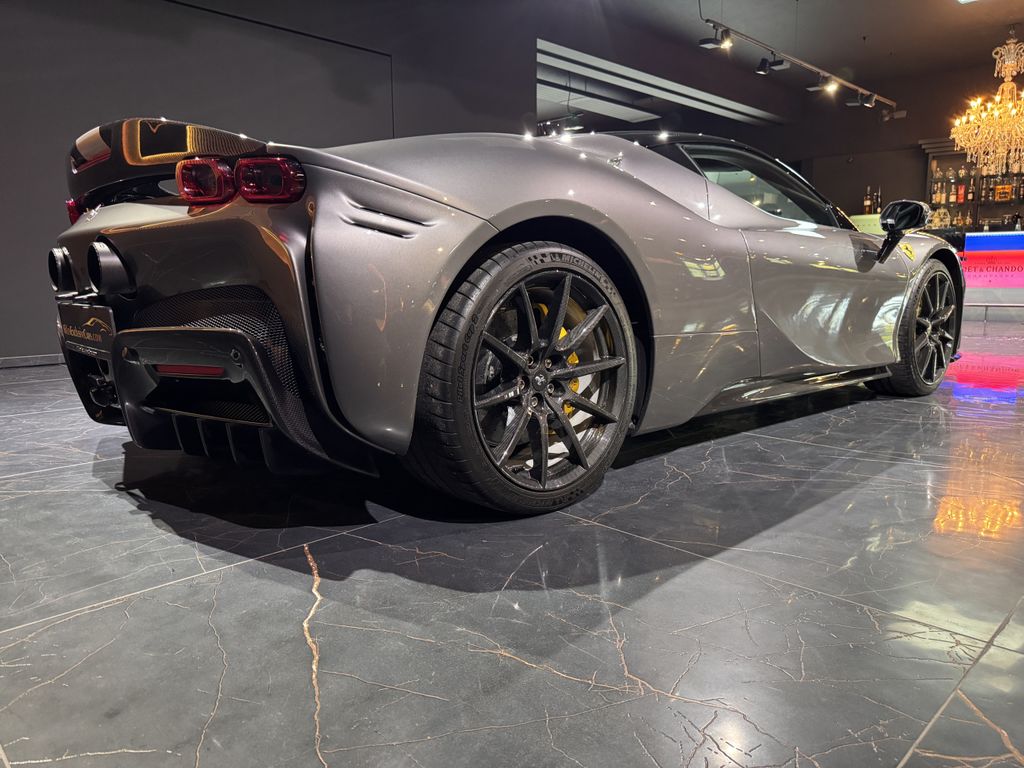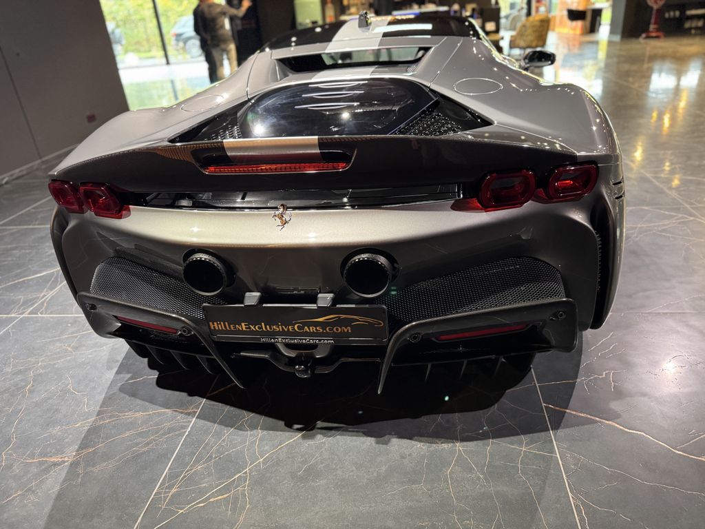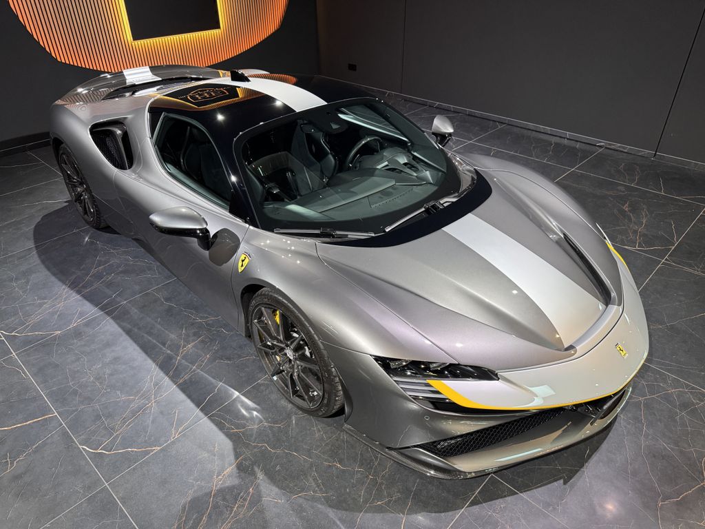 schöner Ferrari SF90 Assetto Fiorano in grau mit gelben Details und sehr umfangreicher Sonderausstattung inkl. Carbon Felgen!