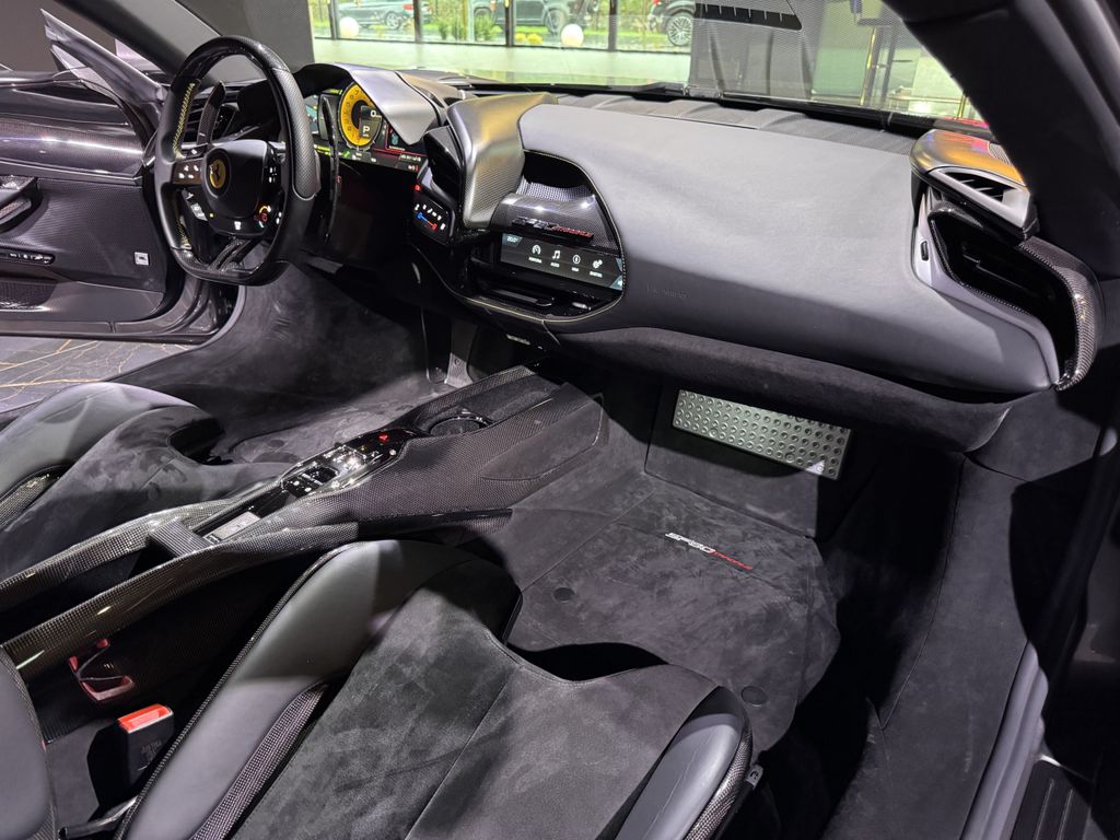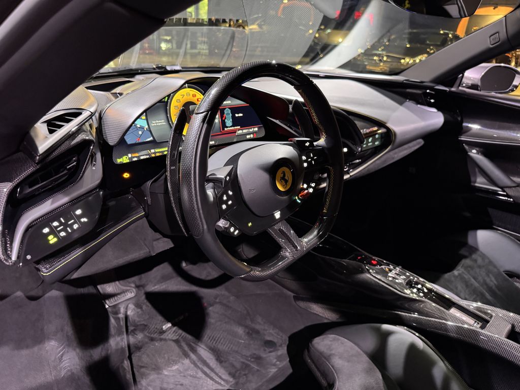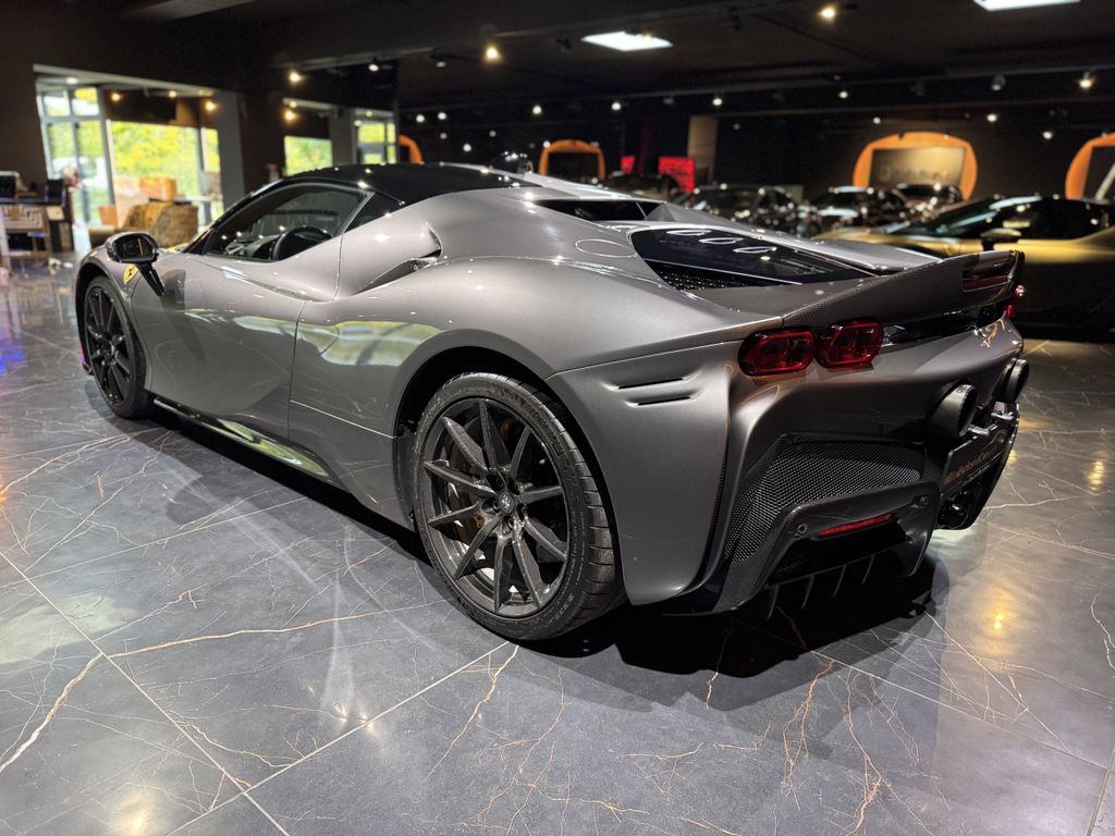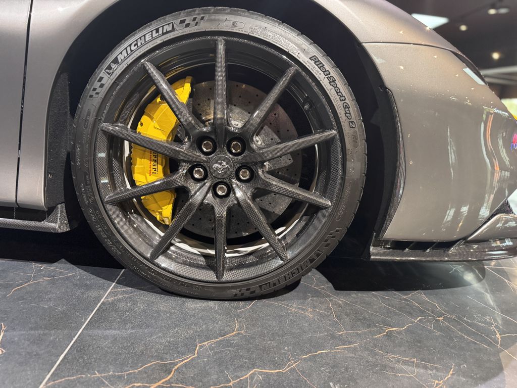 schöner Ferrari SF90 Assetto Fiorano in grau mit gelben Details und sehr umfangreicher Sonderausstattung inkl. Carbon Felgen!