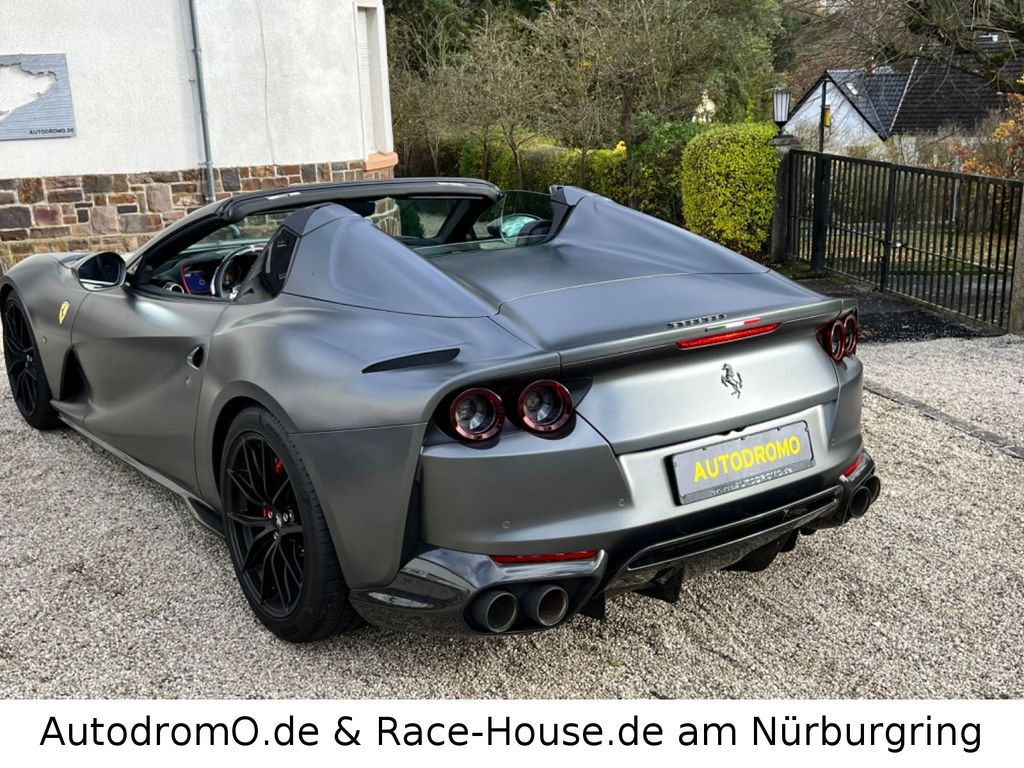 Absolut neuwertiger Ferrari 812 GTS in Sonderfarbe Mattlack grigio Silverstone opaco aus deutscher Auslieferung.Das Fahrzeug verfügt über eine komplette Ausstattung ( siehe Foto ) und wurde sehr besonders mit viel Carbon konfiguriert.