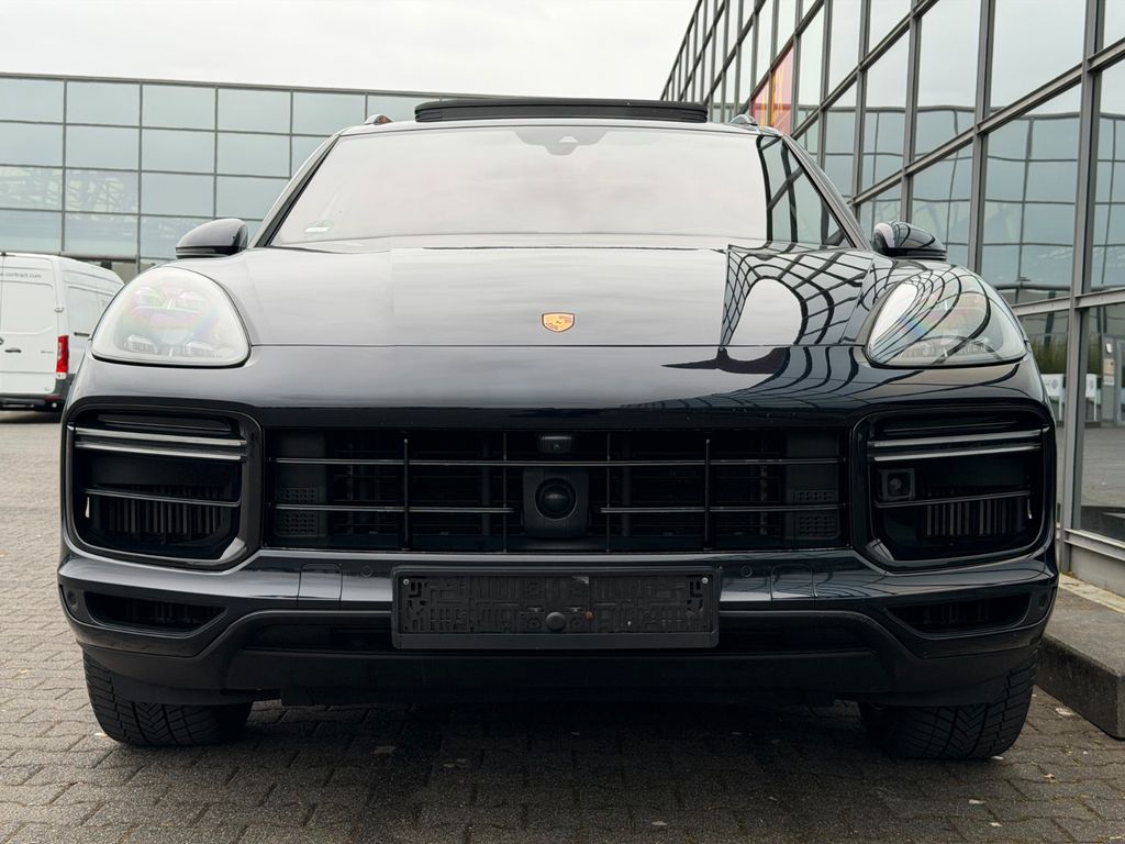 Ambiente-Beleuchtung, Apple CarPlay inkl. Sprachsteuerung, Dachreling, Exterieur-Paket, Fahrassistenz-System: Nachtsicht-Assistent, Fahrassistenz-System: Park-Assistent vorn und hinten inkl. Rückfahrkamera und Surround View, Fahrassistenz-System: Spurwechselassistent, Feuerlöscher, Geschwindigkeits-Regelanlage (Tempomat) mit Abstandsregelung (erweitert), Haltegriffe Dachhimmel Alcantara, Head-up-Display, Heckleuchten LED, abgedunkelt, Interieur-Paket: Holz, Interieur-Paket: Holz, Nussbaumwurzel, Ionisator zur Luftreinigung, Klimaautomatik 4-Zonen, Komfortzugang (Schlüssellose Türentriegelung), Ladekabel mit Industriestecker (32 A / 400 V), Ladevorrichtung On-Board-Lader (bis 7,2 kW), Lenkrad heizbar (Sport / Alcantara, 3-Speichen) mit Schaltfunktion, LM-Felgen vorn/hinten: 9,5x21 / 11x21 (Cayenne Turbo Design Rad, Platinum, Wagenfarbe, seidenglänzend lackiert), Matrix-LED-Scheinwerfer, abgedunkelt, inkl. Porsche Dynamic Light System Plus (PDLS+), Panorama-Schiebedach zweiteilig vorn elektrisch, Radioempfang digital (DAB+), Raucher-Paket, Seitenairbag hinten, Servolenkung Plus (geschwindigkeitsabhängig), Sitzbelüftung vorn, Soft Close Türen, Sound-System Burmester High-End Surround, Verglasung hinten abgedunkelt (Privacyverglasung) inkl. Wärmeschutzverglasung geräuschdämmend, Vierradlenkung