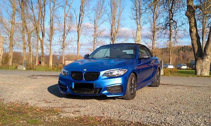 Der Preis wird ausschließlich am Fahrzeug und nicht am Telefon oder per Mail verhandelt!!!Wir verkaufen dieses wunderschöne, sportliche und mit dieser Ausstattung wohl einzigartige Cabrio. Es wurde von uns ausschließlich als Sommer- und Schönwetterfahrzeug genutzt. Hier ist ganz besonders zu erwähnen, dass die Alcantara Austattung klare Vorteile gegenüber der sich stark aufheizenden Leder Ausstattung anderer Cabrios hat. Der schwarze Grill und die Carbon Spiegelkappen untermalen das sportliche Erscheinungsbild und durch den M Performance Endschalldämpfer hebt er sich auch klanglich von vergleichbaren Modellen ab.