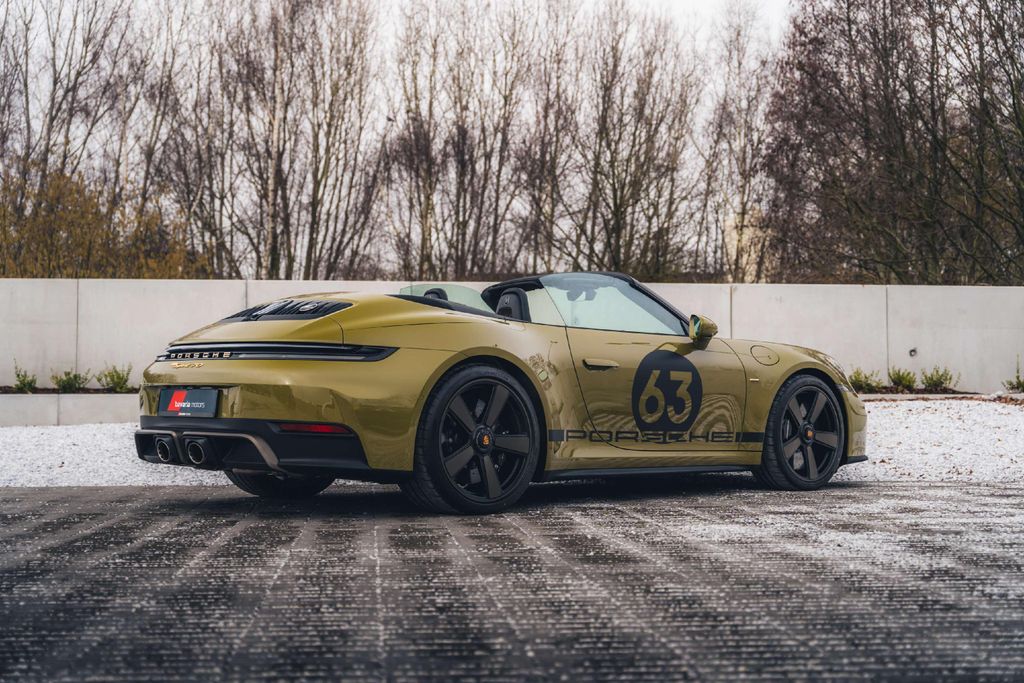 De 992.2 Spirit 70 is de derde 911 in Porsche's Heritage Design reeks. De Targa 4S Heritage Edition vierde de jaren vijftig, de Sport Classic de jaren zestig, en de Spirit 70 de jaren zeventig. De basis is de 992.2 Carrera GTS Cabriolet met achterwielaandrijving en het T-Hybrid systeem: 3,6 liter boxerzescilinder met elektrische turbo en elektromotor in de PDK, samen goed voor 541 pk. Exclusief aan dit model zijn het Olive Neo lak, de Sport Classic velgen met Bronzite accenten, de veiligheidsstrepen op de motorkap, en het Pasha interieur. Dat Pasha patroon, een verwrongen dambord dat een wapperende finishvlag moest voorstellen, verscheen voor het eerst in de Porsche 928 in 1977 en verdween daarna decennialang. Wereldwijd werden 1.500 exemplaren gebouwd.