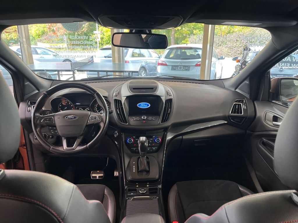 Dieser gepflegte Ford Kuga SUV aus 2018 überzeugt durch seine umfangreiche Ausstattung und Vielseitigkeit. Der 182 PS starke Benzinmotor mit Automatikgetriebe und Allradantrieb bietet sowohl in der Stadt als auch im Gelände optimale Fahreigenschaften. Die braune Metallic-Lackierung harmoniert perfekt mit dem teilweise in schwarzem Leder gehaltenen Innenraum. Mit nur zwei Vorbesitzern und lückenloser Servicehistorie präsentiert sich dieses Fahrzeug in einem sehr guten Zustand.Die Ausstattung lässt kaum Wünsche offen: Vom Panoramaglasdach über die Xenon-Scheinwerfer bis hin zum Navigationssystem mit Touchscreen. Für zusätzlichen Komfort sorgen die elektrisch verstellbaren und beheizbaren Sitze, die Automatik-Klimaanlage sowie das Sportpaket. Sicherheitsfeatures wie Spurhalteassistent, Verkehrszeichenerkennung und Einparksensoren vorne und hinten runden das Paket ab.