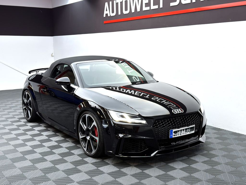 Abbiege- und Allwetterlicht, Adaptives Bremslicht, Airbag Fahrer-/Beifahrerseite, Akustik-Verdeck, Antriebs-Schlupfregelung (ASR), Audi Drive Select, Auspuffendrohr verchromt, AUX-IN-Anschluss, Außenspiegel asphärisch, links, Außenspiegel konvex, rechts, Blinkleuchten LED in Außenspiegel integriert, Bremsanlage mit Rekuperationssystem, Bremsassistent, Einparkhilfe vorn und hinten, akustisch und optisch mit selektiver Anzeige (APS Plus), Einstiegsleisten mit Aluminiumeinlage und Schriftzug, Fahrassistenz-System: Spurhalteassistent (active lane assist), Frontscheibe Verbundglas, Heckflügelspoiler, Heckleuchten LED mit dynamischem Blinklicht, Heckscheibe heizbar, Isofix-Aufnahmen für Kindersitz an Beifahrersitz, Karosserie: 2-türig, Kombiinstrument digital (virtual cockpit), Komfort-Klimaautomatik 2-Zonen, Kopf-Airbag-System (Sideguard), Lendenwirbelstützen vorn, elektr. verstellbar, Lenkrad (Sport/Leder - 3-Speichen, unten abgeflacht) mit Multifunktion plus, Motor 2,5 Ltr. - 294 kW 20V TFSI, Multi-Media-Interface MMI Basic / MMI Radio, Parkbremse elektro-mechanisch, Pedale und Fußstütze in Edelstahl, Progressivlenkung, Reifen-Reparaturkit, Reifendruck-Kontrollsystem, Reifenkontroll-Anzeige, RS-Sportsitze vorn, Schadstoffarm nach Abgasnorm Euro 6, Schalt-/Wählhebelgriff Alcantara / Mikrofaser, Schaltfunktion (Schaltwippen/-tasten) am Lenkrad, Schwellerleisten Sport-Design, Seitenairbag vorn,