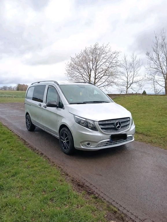 Verkauft wird hier aus Nachlass schweren Herzens ein Mercedes Vito 119CDI Bluetec als Wohnmobilumbau/Camper. Er ist knapp 143000km gelaufen, 2te Hand, verfügt über ein Automatikgetriebe mit Allradantrieb und hat die höchste Motorisierung mit einem 190PS Dieselmotor, so kommt man zügig und komfortabel in den Urlaub und auch im Alltag voran!Es ist ein professioneller Wohnmobilumbau mit Bett, Klapptisch, Kühlschränken, Spülzeile, Stromanschluss für normale Steckdosen 230V, was auch alles vom Tüv abgenommen und eingetragen ist. Die Ausstattung ist auch sehr schön, so verfügt er über Sitzheizung, Multifunktionslenkrad, Anhängerkupplung bis 2.5T, Mittelarmlehnen....