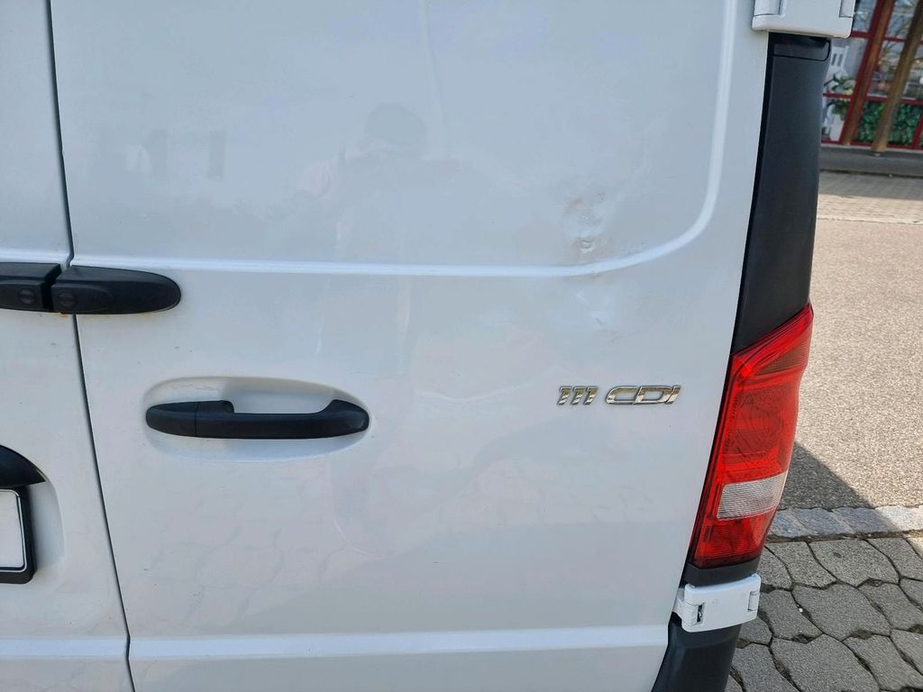 3. Bremsleuchte, Adaptives Bremslicht, Airbag Beifahrerseite, Airbag Fahrerseite, Anfahrhilfe (Berganfahr-Assistent), Außenspiegel asphärisch, beide, Außentemperaturanzeige, Befestigungsschienen für Dachträger, Bremsassistent, Bremssystem mit ABS+ASR, Deckenleuchte im Laderaum, Fahrassistenz-System: Attention-Assist (Müdigkeitserkennungs-Sensor), Fahrassistenz-System: Seitenwind-Assistent, Frontscheibe mit Scheibenantenne, Generator 185 A, Getriebe 6-Gang - FSG, Getränkehalter hinten, Getränkehalter vorn, Gurtstraffer, Haltegriff Beifahrerseite, Handschuhfach abschließbar, Karosserie/Aufbau: Kasten Standard, Karosserie/Aufbau: lang, Kraftstofftank: Haupttank 57 Ltr., Lastenverankerung / Verzurrösen, Motor 1,6 Ltr. - 84 kW CDI KAT, Reifendruck-Kontrollsystem, Rückspiegel innen, Schadstoffarm nach Abgasnorm Euro 6, Schiebetür Lade-/Fahrgastraum rechts, Sicherheitsgurt-System mit Warnanlage (Fahrer-/Beifahrerseite), Sitzbezug / Polsterung: Stoff, Stahlfelgen 6,5x16, Verkleidung Fenstersäulen, Verkleidung im Lade-/FG-Raum: Hartfaser halbhoch, Verzurrschienen im Laderaum - Seitenwand an Dachrahmen, Wartungsintervall-Anzeige Assyst, Zul. Gesamtgewicht 2,80 t