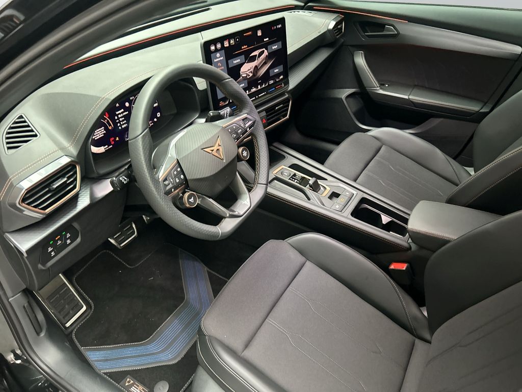 - Weiteres: Leuchtweitenregelung automatisch, Mittelarmlehne vorn, Getriebe 7-Gang DSG, Reifen-Reparaturset, Sportsitze vorn, Lendenwirbelstütze Sitz vorn rechts, verstellbar, Notrufsystem, LM-Felgen, Nebelscheinwerfer LED mit Abbiegelicht, Rücksitzlehnen umklappbar mit Fernentriegelung, Scheinwerfer Voll-LED, USB-Schnittstelle vorn (2-fach, Typ C), Fensterheber elektrisch vorn + hinten, Kombiinstrument digital (virtual cockpit), Seitenairbag vorn mitte (Central Airbag), Zentralverriegelung / Startanlage Keyless Go (Start-Stop-Knopf), Seitenscheiben hinten und Heckscheibe abgedunkelt, Isofix-Aufnahmen für Kindersitz an Beifahrersitz und Rücksitz (inkl. i-Size-Kindersitze), Lenkrad heizbar (CUPRA Supersport, Leder) mit Multifunktion und Schaltfunktion, Mild-Hybrid 110 kW (Motor 1,5 Ltr. - 110 kW eTSI), Radstand Standard, Schadstoffarm nach Abgasnorm Euro 6e, Außenspiegel elektr. verstell-, heiz- und anklappbar mit Spiegelabsenkung und Welcome Light, Mobile Online Dienste Cupra Connect plus, Connectivity-Box, Innenausstattung: Interieurleisten Copper, Audio-Navigationssystem mit Touchscreen Farbbildschirm 12,9, Rücksitzlehne geteilt/klappbar mit Mittelarmlehne und Durchladeeinrichtung, Sitzbezug / Polsterung: Stoff/Kunstleder schwarz (Sharp Textil), Rückfahrkamera, Heckklappe/-Deckel elektr. betätigt (öffnen + schliessen, sensorgesteuert), Schließ-/Startsystem Kessy Advanced, Audio-Navigationssystem mit Touchscreen Farbbildschirm 12,9, Fahrassistenz-System: Spurhalteassistent Plus inkl. Travel Assist, Emergency Assist und Stauassistent, Edge-Paket, Kopf-Airbag-System, Gepäckraumabdeckung / Rollo, Licht- und Regensensor, Reifenkontroll-Anzeige, Seitenairbag, Airbag Fahrer-/Beifahrerseite, Parkbremse elektrisch mit Auto-Hold-Funktion, Full Link (MirrorLink, Apple CarPlay und Android Auto), Heckleuchten Voll-LED mit dynamischem Lichtband (Infinite Light), Dachreling schwarz, hochglänzend, Gepäckraumbeleuchtung (LED), Seitenscheiben ab 2.Sitzreihe und Heckscheibe dunkel getönt (Privacy Glass), Ambiente-Beleuchtung LED, Metallic-Lackierung, Ambiente-Beleuchtung Smart Ambient Light, Antriebsart: Frontantrieb, Autom. Distanzregelung (ACC / PCC) mit vorausschauender Geschw.-Regelung, Beifahrerairbag abschaltbar, Climatronic 3-Zonen, Diebstahl-Warnanlage mit Innenraumüberwachung und Abschleppschutz, Differentialsperre (Vorderachse), Einparkhilfe vorn und hinten, Einschaltautomatik für Fahrlicht, Elektron. Differentialsperre (XDS), Fahrassistenz-Paket XL, Fahrprofilauswahl (CUPRA Drive Profile), Fensterzierleisten schwarz, Fernlichtassistent, Gepäck-/Laderaumboden doppelt, Handschuhfach mit LED-Beleuchtung, Innenspiegel mit Abblendautomatik, Kopfstützen hinten, Lendenwirbelstütze, Leseleuchten vorn LED, Licht- und Sicht-Paket, Lichtassistent (Coming Home, Leaving Home), Media-System Plus, Müdigkeitserkennung, Pre-Crash-System, Progressivlenkung, Radioempfang digital (DAB+), Sitzheizung vorn, Sitzhöhenverstellung, Sitzhöhenverstellung Fahrersitz, Spurhalteassistent, Totwinkel-Assistent mit Auspark-Assistent, Spurwechselassistent und Ausstiegswarnung