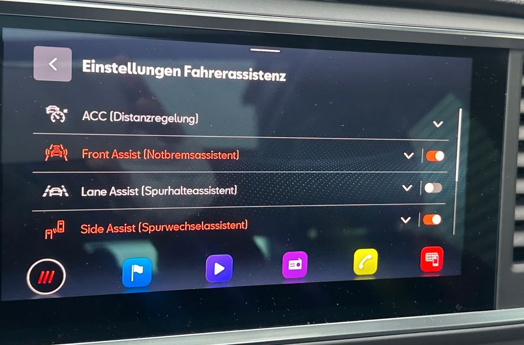- Fahrassistenz-Paket L:, Fernlichtassistent, Verkehrszeichenerkennung, Pre-Crash-System, Autom. Distanzregelung (ACC / PCC) mit vorausschauender Geschw.-Regelung, Automatische Distanzregelung (ACC), Totwinkel-Assistent mit Auspark-Assistent, Spurwechselassistent und Ausstiegswarnung, Spurwechselassistent (Blind Spot Detection), Spurhalteassistent, Parklenkassistent mit Einparkhilfe vorn und hinten