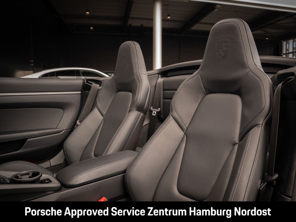 - Weiteres: (0NC) Modellbezeichnung lackiert in Schwarz (hochglanz), (2D4) SportDesign Bugverkleidung, (1N3) Servolenkung Plus, (8LH) Sport Chrono Paket inkl. Porsche Track Precision App & Reifentemperaturanzeige, (0P9) Sportabgasanlage (Endrohrblenden in schwarz), (0I2) 84 Liter Kraftstofftank, (1NZ) Räder lackiert in Schwarz (hochglanz), glanzgedreht, (C8T) 20-/21-Zoll Carrera S Räder, (Q4Q) Sportsitze Plus (4 Wege, elektrisch), (2PJ) GT-Sportlenkrad in Leder inkl. Lenkradheizung, (3J7) Porsche Wappen auf Kopfstützen, (VT2) Türeinstiegsblenden Aluminium gebürstet in Darksilver, beleuchtet, (QE3) Ablagenetz Beifahrerfußraum, (9VL) BOSE® Surround Sound-System, (8IU) HD-Matrix LED-Hauptscheinwerfer, (UD1) LED-Türprojektoren „PORSCHE“ Schriftzug, (4F2) Komfortzugang, (FT3) Surround View inkl. Aktive Einparkunterstützung, (7Y8) Spurwechselassistent, (8T3) Abstandsregeltempostat
