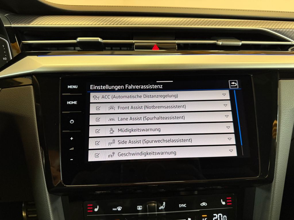 Airbag Fahrer-/Beifahrerseite, Beifahrerairbag abschaltbar, Knieairbag Fahrerseite, Aktive Frontklappe, Ambiente-Beleuchtung (30 Farben), Antennen-Diversity, Antriebs-Schlupfregelung (ASR), App-Connect inkl. App-Connect Wireless (Apple CarPlay, Android Auto), App-Connect inkl. App-Connect Wireless und Apple CarPlay, Ausstattung R, Ausstattungs-Paket: Easy Open & Close, Automatische Fahrlichtschaltung (ALS) mit Leaving Home / Coming-Home-Lichtfunktion, Außenspiegel elektr. verstell-, heiz- und anklappbar, Spiegelabsenkung und Umfeldleuchte, Bremsassistent, Chrom-Paket 2, Chromleisten an Seitenfenstern, Dachhimmel Stoff, schwarz, Diebstahlsicherung für Räder (Felgenschlösser), Digital Cockpit (Instrumentenanzeige digital), Doppeltonhorn, Einparkhilfe vorn und hinten, Einstiegsleisten vorn R, Einstiegsleuchten in den Türen vorn LED, Elektron. Differentialsperre (EDS), Elektron. Differentialsperre (XDS), Elektron. Stabilitäts-Programm (ESP) mit Bremskraftverstärker elektro-mechanisch, Fahrassistenz-System: Adaptive Fahrwerksregelung (DCC), Fahrassistenz-System: Autom. Distanzregelung (ACC inkl. Stop&Go-Funktion), Fahrassistenz-System: Berganfahr-Assistent, Fahrassistenz-System: Fahrprofilauswahl, Fahrassistenz-System: Fernlichtregulierung (Light Assist), Fahrassistenz-System: Fußgängererkennung, Fahrassistenz-System: Spurhalteassistent (Lane Assist), Fahrassistenz-System: Umfeldbeobachtungssystem (Front assist) mit City-Notbremsfunktion, Fahrassistenz-System: Verkehrszeichenerkennung, Frontscheibe Verbundglas getönt, Fußmatten Textil, Fußraumbeleuchtung vorn LED, Gepäckraum-Abtrennung (Netztrennwand), Gepäckraumabdeckung / Rollo, Heckleuchten LED in 3D-Optik, Blinkleuchten dynamisch, Innenausstattung: Dekoreinlagen Black Carbon, Innenausstattung: Dekoreinlagen Mittelkonsole Piano Black / schwarz glänzend, Innenraumfilter: Aktiv Kombifilter, Innenspiegel mit Abblendautomatik, Isofix-Aufnahmen für Kindersitz an Rücksitze (inkl. i-Size-Kindersitze), Karosserie: 5-türig, Kopf-Airbag-System vorn und hinten inkl. Seitenairbag vorn, Kopfstützen hinten (3-fach), Lautsprecher (8), Lenkrad heizbar (Leder, R) mit Multifunktion und Schaltfunktion, Lenksäule (Lenkrad) mechan. verstellbar, Höhen-/Längsverstellung, Leseleuchten vorn und hinten LED, LM-Felgen, Mittelarmlehne vorn mit Ablagefach und Luftausströmer hinten, Mobile Online Dienste Vorbereitung We Connect und We Connect Plus, Modellpflege, Motor 2,0 Ltr. - 235 kW TSI, Nebelschlussleuchte, Nichtraucher-Paket, Notrufsystem, Otto-Partikelfilter (OPF), Parkbremse elektrisch mit Auto-Hold-Funktion, Pedale Edelstahl, Progressivlenkung, Radioempfang digital (DAB+), Reifendruck-Kontrollsystem, Rücksitzlehne geteilt mit Mittelarmlehne und Durchladeeinrichtung, Schadstoffarm nach Abgasnorm Euro 6e, Schalt-/Wählhebelgriff Leder, Scheibenwaschdüsen heizbar, Scheinwerfer LED, Sicherheitsgurte hinten außen mit Gurtstraffer, Sicherheitsgurte vorn mit Gurtstraffer, höhenverstellbar, Sitz vorn links ErgoComfort (inkl. Lehnenverstellung elektrisch), Sitzbezug / Polsterung: Stoff / Mikrovlies ArtVelours, Sitze: Top-Komfortsitze vorn, Start/Stop-Anlage, Steckdose 12V im Fond, Stoßfänger R, Türschutzleisten unten verchromt, Verbandkasten und Warndreieck, Warnanlage für Sicherheitsgurte vorn und hinten