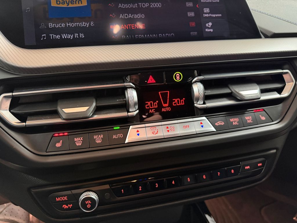 Ablage-Paket, Aerodynamik-Paket M-Technic, Airbag Beifahrerseite abschaltbar, Airbag Fahrer-/Beifahrerseite, Anhänger-Stabilisierungs-Programm (ASL), Ausstattungs-Paket: Connected, Ausstattungs-Paket: ConnectedDrive Services, Außenspiegel elektr. verstell- und heizbar, BMW Live Cockpit, BMW Live Cockpit Professional, Bordcomputer, DAB-Tuner (Radioempfang digital), Dachhimmel Anthrazit (BMW Individual), Diebstahlsicherung für Räder (Felgenschlösser), Dynamische Stabilitäts-Control (DSC) mit erweiterter Umfang, Dynamische Tractions Control (DTC), Elektron. Sperrdifferential, Fahrassistenz-System: Active Guard Plus (Spurhalteassistent, Frontkollisionswarnung), Fahrassistenz-System: Aufmerksamkeits-Assistent, Fahrassistenz-System: Fahrerlebnisschalter, Fahrassistenz-System: Performance Control, Fensterheber elektrisch vorn + hinten, Freisprecheinrichtung Bluetooth mit USB-/Audio-Schnittstelle, Fußmatten Velours, Getriebe 7-Gang - Doppelkupplungsgetriebe Sport mit Steptronic, Heckleuchten LED, Innenausstattung: Interieurleisten Illuminated Boston, Isofix-Aufnahmen für Kindersitz an Rücksitz, Karosserie: 5-türig, Kopf-Airbag-System hinten, Kopf-Airbag-System vorn, Kraftstofftank: vergrößert, Lenksäule (Lenkrad) mechan. verstellbar, Leuchtweitenregelung, Licht-Paket, LM-Felgen, M Sport, Motor 2,0 Ltr. - 131 kW 16V Turbo, Otto-Partikelfilter (OPF), Park-Distance-Control (PDC) vorn und hinten, Parkbremse elektrisch, Personalisierungssystem (Personal Profile), Reifendruck-Kontrollsystem, Schadstoffarm nach Abgasnorm Euro 6d, Scheibenwaschdüsen heizbar, Scheinwerfer LED, Seitenairbag vorn, Service-System: ConnectedDrive Services, Service-System: Intelligenter Notruf inkl. TeleServices, Sitzbezug / Polsterung: Stoff / Sensatec-Kombination Trigon, Sport-Fahrwerk (M-Technic), Sportlenkung (M-Technic), Sportsitze vorn, Start-Stop-Knopf, Start/Stop-Anlage (Funktion), Warndreieck, Wärmeschutzverglasung getönt, Innenspiegel automatisch abblendend, Sitzheizung vorn