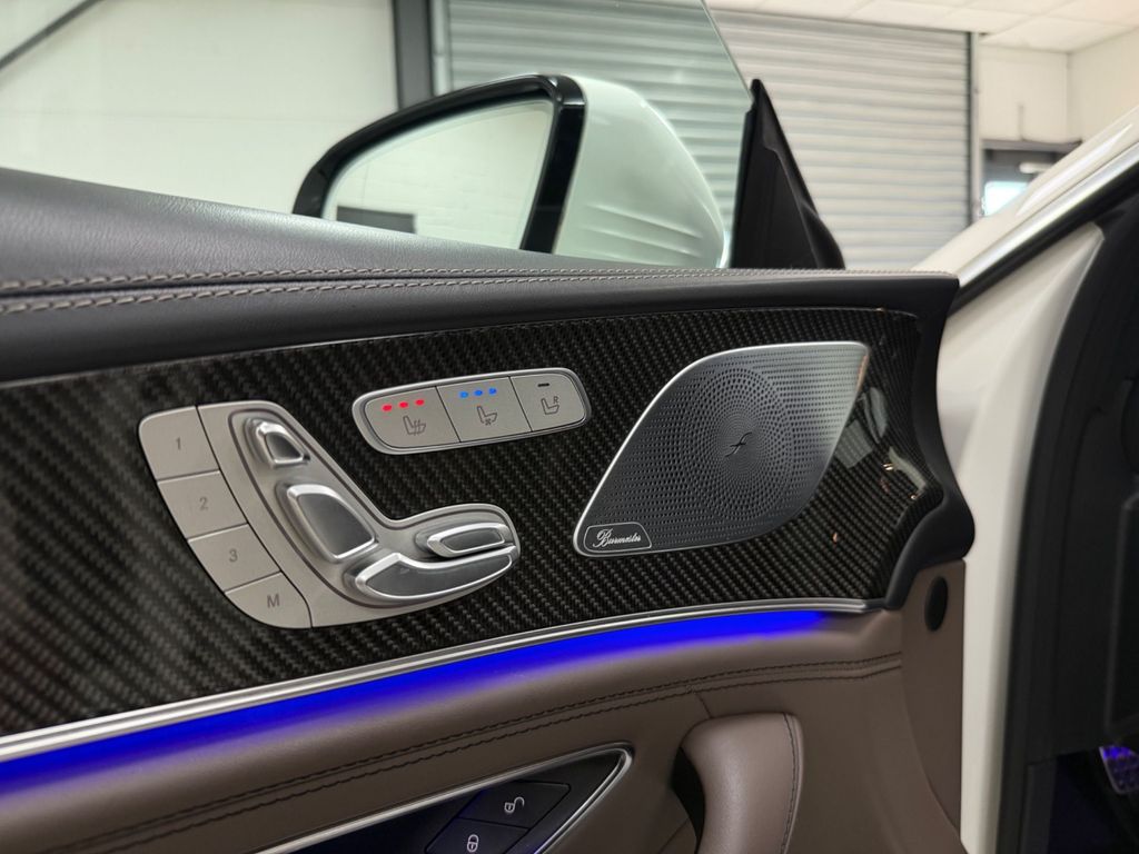 Besonders hervorzuheben sind die AMG Keramik-Bremsanlage, das Burmester Surround-System, das Panorama-Glasdach, die 360° Kamera sowie der exklusive First-Class Fond.