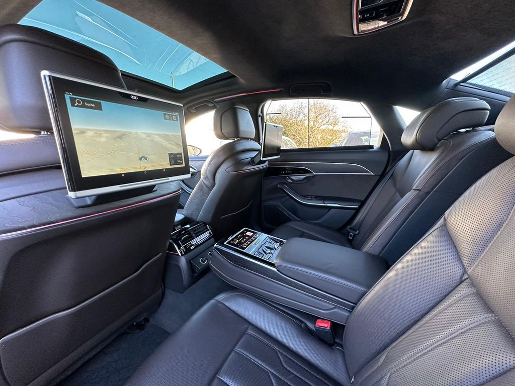 Sonderausstattung:Alcantara-Paket mit Dachhimmel schwarz, Assistenz-Paket Stadt, Audi connect Schlüssel, Audi music interface im Fond, Audi Smartphone Interface, Ausstattungs-Paket: Chrom-Exterieurpaket, Bedienelemente Glasoptik, inkl. erweiterter Aluminium-Optik, Doppelverglasung / Akustikglas, Durchladeeinrichtung (Mittelarmlehne hinten), Dynamiklenkung - Allradlenkung, Fondsitz-Paket Einzelsitze (2+1 Sitze), Gepäckraum-Paket, Innenausstattung: Dekoreinlagen unten Aluminium gebürstet, Ionisator zur Luftreinigung (Air-Quality-System), Kamerasystem Umgebungsansicht (Top View), Komfort-Individualkontursitz-Paket, Kontur / Ambientebeleuchtungs-Paket (plus), Kraftstofftank: 82 Ltr., Leder-Paket erweitert, Leseleuchten im Fond zusätzlich, LM-Felgen 9x20 (5-Arm-Turbinen-Design, Magnesiumoptik, glanzgedreht), Metallic-Lackierung, Panorama-Ausstelldach elektrisch, Radioempfang digital (DAB), Rear Seat Entertainment RSE mit 2 Tablet, Rear Seat Remote Bedieneinheit (Zentraleinheit im Fond), Reifendruck-Kontrollsystem, Sender für Garagentoröffner (integriert), Servoschliessung für Türen, Sitzbelüftung und Massagefunktion vorn und hinten, Sound-System Bang & Olufsen, Standheizung, Technologie-Paket Better Vision, Wärme-Komfort-Paket vorn