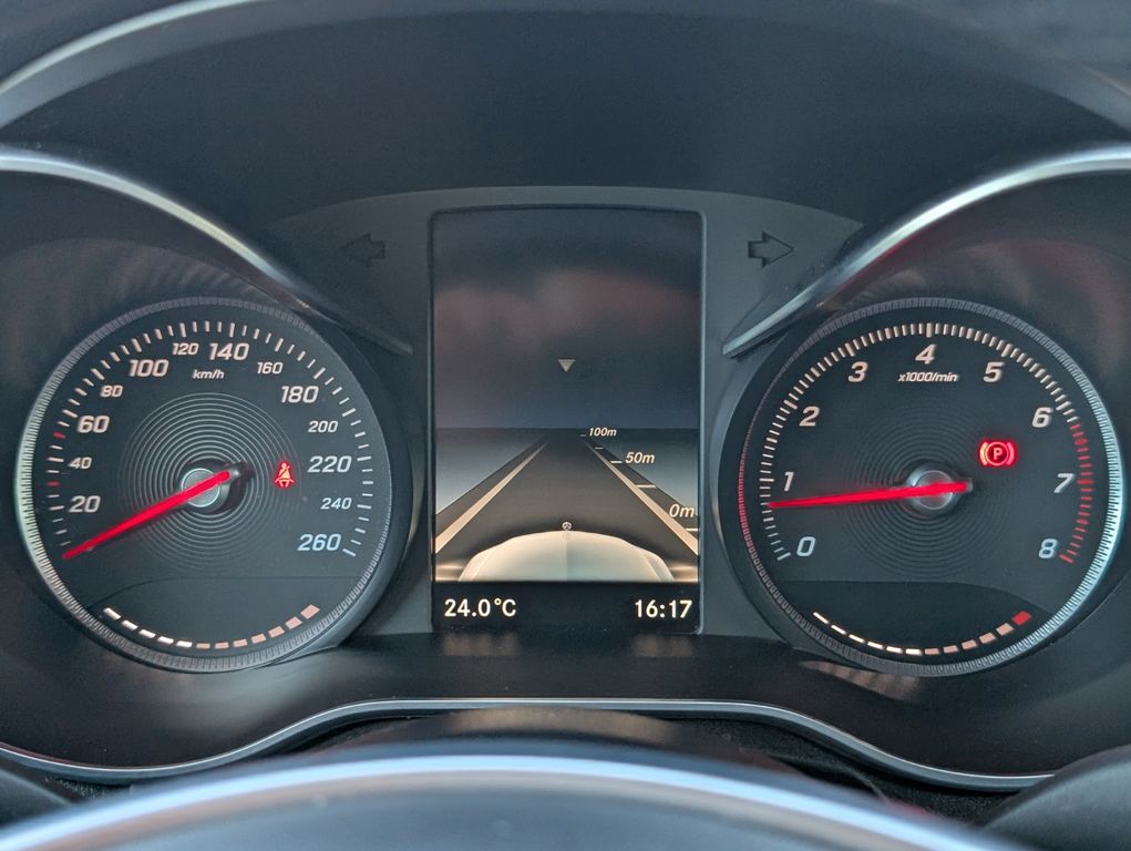 Sonderausstattung:Ablage-Paket, Ambiente-Beleuchtung, AMG-Line Interieur, Audiosystem Audio 20 (mit Farbdisplay), Fahrassistenz-Paket Plus, Fernschließung Heckdeckel, Gurtbringer, Infotainment-System: Remote Online, Keyless Go Startanlage, Kraftstofftank: vergrößert, Navigationsmodul Garmin MAP Pilot, Park-Paket, Reifen-Reparaturset (Tirefit), Scheibenwaschanlage beheizt, Sitz vorn links elektr. verstellbar (mit Memory), Sitz vorn rechts elektr. verstellbar (mit Memory), Sitzheizung vorn, Smartphone integriert, Sonderlackierung Metallic hyazinthrot (designo-Lack), Spiegel-Paket, Sport-Fahrwerk, Surround-System Burmester, Touchpad mit Drehknopf (Mittelkonsole), Vorbereitung Navigationssystem (Garmin MAP Pilot), Vorrüstung Mobiltelefon/Handy / Komfort-Telefonie / LTE-fähig