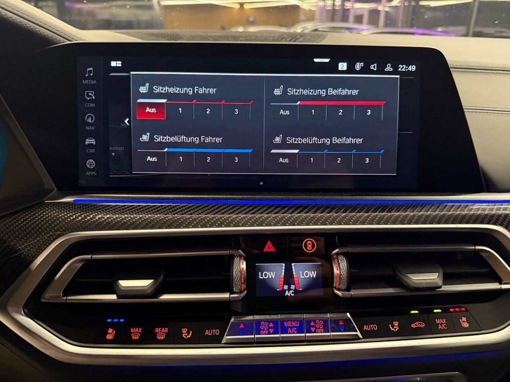 Ablage-Paket, Adaptives Fahrwerk M Professional, Aerodynamik-Paket M-Technic, Airbag Fahrer-/Beifahrerseite, Ambiente-Beleuchtung, Ausstattungs-Paket: Connected Professional, Außenausstattung: Shadow-Line Hochglanz, Außenausstattung: Shadow-Line Hochglanz (erweiterter Umfang), Außenspiegel elektr. anklappbar, alle Spiegel mit Abblendautomatik, BMW Live Cockpit Professional, Bremsanlage: M Sportbremsen (Bremssättel lackiert), Dachhimmel Alcantara / Anthrazit, Diebstahlsicherung für Räder (Felgenschlösser), Dynamische Tractions Control (DTC), Einstiegsleisten mit Schriftzug BMW (beleuchtet), Fahrassistenz-System: Active Guard Plus (Spurhalteassistent, Frontkollisionswarnung), Fahrassistenz-System: BMW Gestiksteuerung, Fahrassistenz-System: Driving Assistant, Fahrassistenz-System: Rückfahr-Assistent, Freisprecheinrichtung Bluetooth mit erweiterte Smartphone-Anbindung, Fußmatten Velours, Getriebe Automatik - mit Steptronic und Drivelogic (8-Stufen), Head-up-Display, Heckleuchten LED, HiFi-Lautsprechersystem, Induktionsladeschale für Smartphone (Wireless Charging), Instrumententafel lederbezogen, Isofix-Aufnahmen für Kindersitz an Rücksitz, Karosserie: 5-türig, Klimaautomatik 2,5-Zonen mit autom. Umluft-Control, Kopf-Airbag-System hinten, Kopf-Airbag-System vorn, Lendenwirbelstütze Sitz vorn links und rechts, Lenkrad (Sport/Leder M-Technic) mit Multifunktion, Lenksäule (Lenkrad) elektr. verstellbar, M Competition, M Multifunktionssitze vorn, Metallic-Lackierung, Mittelarmlehne hinten, Motor 4,4 Ltr. - 460 kW V8 32V, Otto-Partikelfilter (OPF), Park-Distance-Control (PDC) vorn und hinten, Parkassistent-Paket, Parkbremse elektrisch, Personalisierungssystem (Personal Profile), Radstand 2972 mm, Reifendruck-Kontrollsystem, Rücksitzlehne geteilt/klappbar (40:20:40), Schadstoffarm nach Abgasnorm Euro 6d, Scheibenwaschdüsen heizbar, Seitenairbag vorn, Service-System: ConnectedDrive Services, Service-System: Intelligenter Notruf inkl. TeleServices, Sicherheitsgurte M, Sicherheitssystem Active Protection, Sitzausstattung: 5-Sitzer, Sitze vorn elektr. verstellbar (links mit Memory), Sitzheizung vorn, Sound-System Harman-Kardon, Sport-Auspuffanlage M, Sportdifferential, Start/Stop-Anlage (Funktion), Steckdose (12V-Anschluß) in Mittelkonsole und Koffer-/Laderaum (4-fach), USB-Schnittstelle, Warndreieck