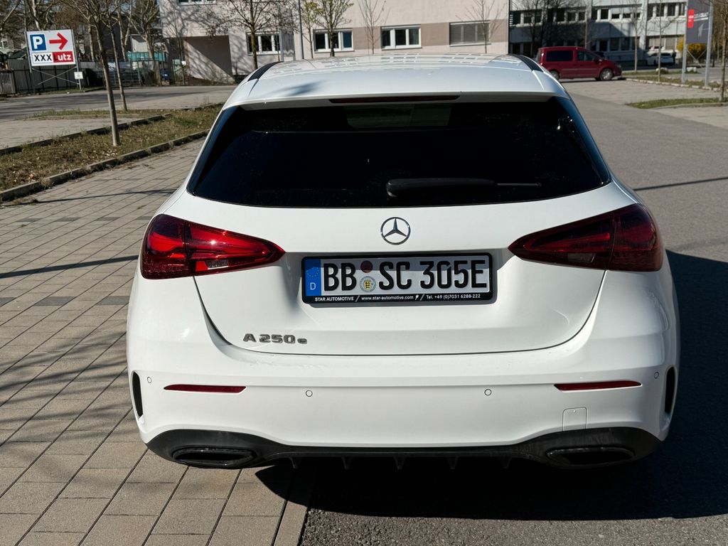 Airbag Beifahrerseite abschaltbar, Airbag Fahrer-/Beifahrerseite, Akustischer Umfeldschutz (Außensound), Aufladesystem Wechselstrom (AC), Ausstattungs-Paket: Advanced Plus, Außenspiegel elektr. verstell- und heizbar, beide, Beckenairbag vorn (Pelvisbag), DAB-Tuner (Radioempfang digital), Design- und Ausstattungslinie AMG Line, Elektromotor 75 kW (Hybridantrieb), Elektromotor 80 kW (Hybridantrieb), Fahrassistenz-System: Agility Select / Dynamic Select (Fahrmodusschalter), Fahrzeug Setup (Onlinedienste / Apps), Fahrzeug-Monitoring (Fahrzeugortungssystem), Fensterheber elektrisch vorn + hinten, Fußmatten AMG, Getriebe 8-Gang - Doppelkupplungsgetriebe DCT, Hybrid 160 kW (Motor 1,3 Ltr. - 120 kW), Innenausstattung: Zierteile Aluminium Längsschliff, Innenhimmel Stoff, Karosserie: 5-türig, Keyless Go Startanlage, Klimaautomatik (Thermatic), Knieairbag Fahrerseite, Komfort-Fahrwerk (Agility Control), Kommunikationsmodul (LTE) Vorbereitung Mercedes me connect, Kopf-Airbag-System (Windowbag), Ladekabel für öffentliche Ladesäulen, Ladekabel mit Schukostecker, LM-Felgen, Mercedes-Benz Notrufsystem, Modellpflege mit Code, Multimediasystem MBUX (Digitales Multimedia-System), Night-Paket, Otto-Partikelfilter (OPF), Reifendruck-Kontrollsystem, Rücksitzlehne geteilt / klappbar, Schadstoffarm nach Abgasnorm Euro 6e, Seitenairbag (Sidebag) vorn, Sitzbezug / Polsterung: Ledernachbildung Artico / Mikrofaser Microcut schwarz, Sprachbediensystem Erweiterte Funktionen (MBUX), Start/Stop-Anlage, Touchpad (Mittelkonsole), USB-Anschluss im Fond