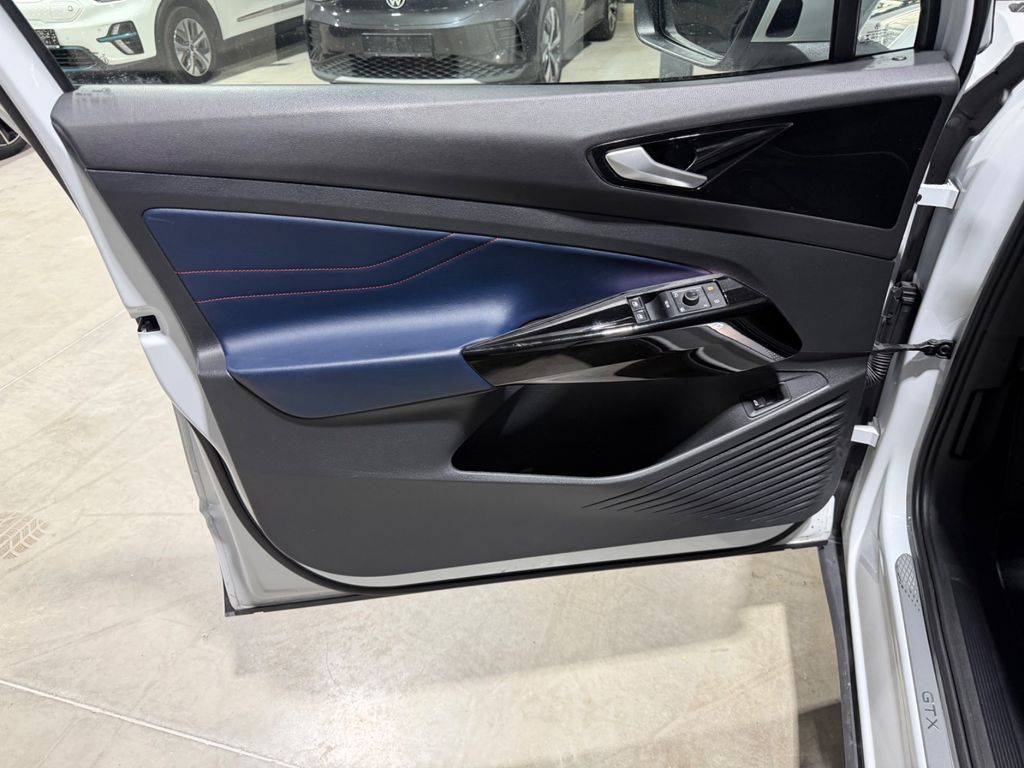 Airbag Fahrer-/Beifahrerseite, Beifahrerairbag abschaltbar, Akustischer Fußgängerschutz, Außensound (e-sound), Ambiente-Beleuchtung (30 Farben), Antennen-Diversity, App-Connect inkl. App-Connect Wireless (Apple CarPlay, Android Auto), Armlehnen für Fahrer- und Beifahrersitz, Ausstattung GTX, Außenspiegel asphärisch, links, Außenspiegel konvex, rechts, Außenspiegel mit Umfeldleuchte und Projektionsfunktion, Außenspiegel und Türgriffe außen in Wagenfarbe, Dach in Kontrastfarbe, Diebstahlsicherung für Räder (Felgenschlösser), Einparkhilfe vorn und hinten, Elektromotor 220 kW (cont. 77 kW, Dual-Elektromotor), Fahrassistenz-System: Dynamische Fernlichtregulierung (Dynamic Light Assist), Fahrassistenz-System: Fahrprofilauswahl, Fahrassistenz-System: Müdigkeitserkennung, Fahrassistenz-System: Umfeldbeobachtungssystem (Front assist) mit City-Notbremsfunktion, Fahrassistenz-System: Verkehrszeichenerkennung, Geschwindigkeits-Begrenzeranlage, Getriebe für Elektrofahrzeug, Getränkehalter hinten, Heckleuchten LED in 3D-Optik, Blinkleuchten dynamisch, Heckscheibenwischer, HV-Batterie 82 kWh brutto / 77 kWh netto, Innenausstattung: Bedienelemente und Einfassung Instrumente schwarz, Innenraumfilter: Aktiv Kombifilter, Innenspiegel mit Abblendautomatik, Isofix-Aufnahmen für Kindersitz an Beifahrersitz und Rücksitz (inkl. i-Size-Kindersitze), Karosserie: 5-türig, Kopfstützen hinten (3-fach), Ladekabel mit Typ 2-Stecker (Mode 3, 16 A), Ladeleistung HV-Batterie 11 kW (Wechselstrom AC), Ladeleistung HV-Batterie 125 kW (Gleichstrom DC), Lautsprecher (7, vorn und hinten), Matrix-LED-Scheinwerfer (IQ.Light) inkl. autom. Fahrlichtschaltung, Schlechtwetter-Licht und Begrüßungsfunktion, Notrufsystem, Pedale Edelstahl, Radioempfang digital (DAB+), Radstand 2769 mm, Reifenkontroll-Anzeige, Rücksitzlehne geteilt mit Mittelarmlehne und Durchladeeinrichtung, Seitenairbag vorn mit Center-Airbag und Kopf-Airbag-Einheit, Service-System: Intelligente Fahrzeugvernetzung (Car2X), Service-System: Online Update, Sicherheitsgurte vorn mit Gurtstraffer und Endbeschlagstraffer, höhenverstellbar, Sonnenblenden mit Spiegel (beleuchtet), Sprachsteuerungs-System, Türverkleidung Kunstleder, Verbandkasten und Warndreieck, Warnanlage für Sicherheitsgurte vorn und hinten