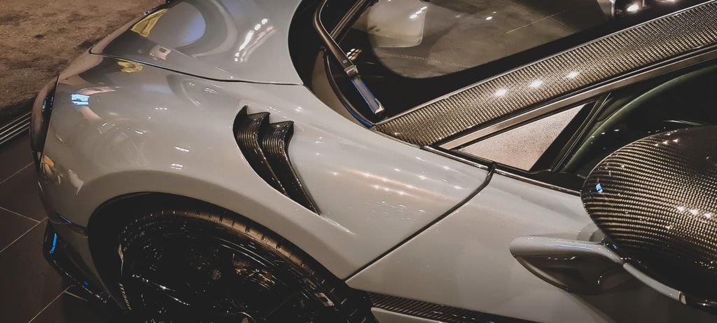 With all the carbon fiber packages and MSO options, ~50% of the car's exterior is exposed carbon fiber with a herringbone weave running directly down the center of the car from the front splitter and bumper, over the roof and engine cover, to the rear bumper and diffuser. No other car under €1 Million has more exposed carbon.