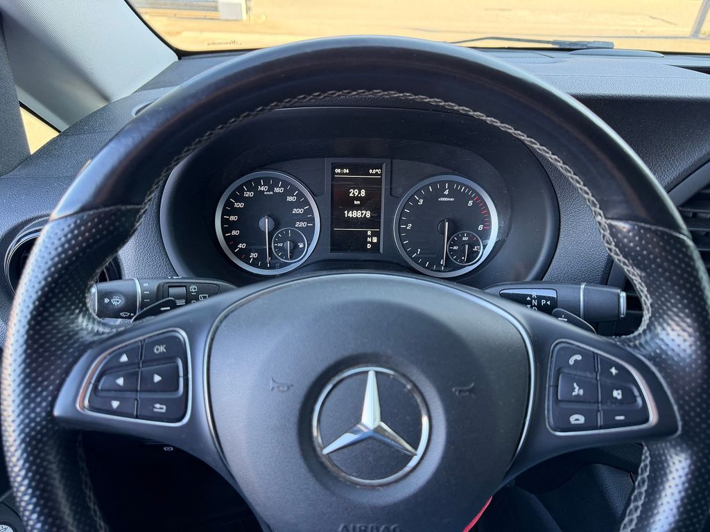Sonderausstattung:Anhängelast 2500 kg, Audio-Navigationssystem Audio 40 (DAB+, Bluetooth, USB), DAB-Tuner (Radioempfang digital), Fahrassistenz-System: aktiver Bremsassistent, Getränkehalter hinten, Getränkehalter vorn (doppelt), Hecktür mit Verglasung (Öffnungswinkel 180 Grad), Intelligent Light System LED, Klimaautomatik Fond (Tempmatik), Kraftstofftank: vergrößert, Park-Paket, Sitzausstattung: Schnellverriegelung für Sitzschienen-System, Tempomat mit Abstandsregelung / Distronic Plus, Zweiwege Lautsprecher vorn und hinten