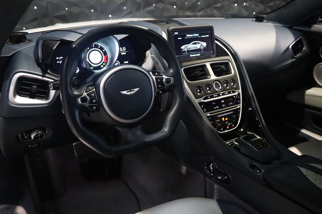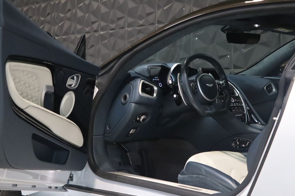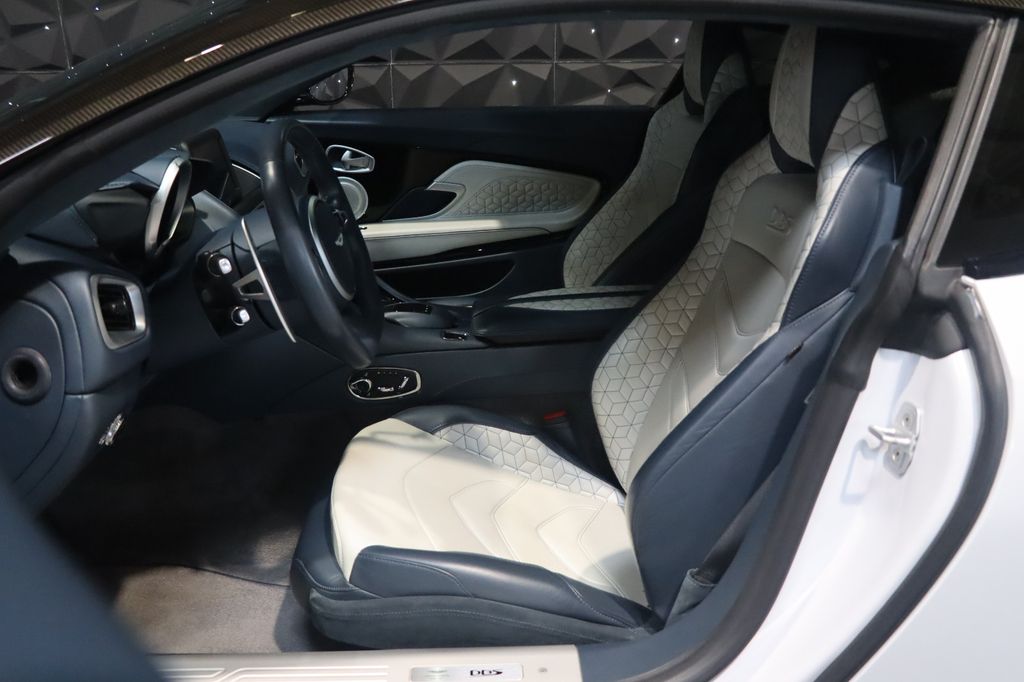 L'exemplaire que nous vous proposons est présenté dans une sublime configuration purement dans l'esprit "GT", avec cette teinte AML Spécial "White Stone" et un intérieur également sur mesure full cuir Bi-ton "Blue Haze Metallic / Argento Metallicet". L'auto est parfaitement équipée avec notamment l'excellent système audio B&O, les sièges chauffants et ventilés, la caméra 360, le carbone extérieur... La voiture est comme neuve, déjà immatriculée en France et a bénéficié d'un entretien 100% Aston MartinConfiguration
