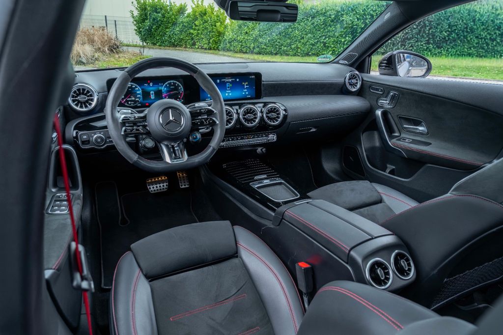 Airbag Beifahrerseite abschaltbar, Airbag Fahrer-/Beifahrerseite, Ambiente-Beleuchtung, AMG Driver's Package, Außenspiegel elektr. verstell- und heizbar, beide, Beckenairbag vorn (Pelvisbag), Bremssättel Rot lackiert, DAB-Tuner (Radioempfang digital), Dachspoiler, Design- und Ausstattungslinie Standard, Display-Paket, Edelstahlpedale Sportdesign, Einstiegsleisten (AMG) beleuchtet, Fahrassistenz-System: Agility Select / Dynamic Select (Fahrmodusschalter), Fahrer-Informations-System (AMG Performance Media), Fahrzeug Setup (Onlinedienste / Apps), Fahrzeug-Monitoring (Fahrzeugortungssystem), Fensterheber elektrisch vorn + hinten, Fußmatten AMG, Getriebe 8-Gang - Doppelkupplungsgetriebe DCT, Getränkehalter vorn (doppelt), Innenausstattung: Zierteile Microfaser Dinamica, schwarz, Innenhimmel schwarz, Karosserie: 5-türig, Keyless Go Startanlage, Klimaautomatik (Thermotronik), Knieairbag Fahrerseite, Kommunikationsmodul (LTE) Vorbereitung Mercedes me connect, Kopf-Airbag-System (Windowbag), Kraftstofftank: vergrößert, Lenkrad (AMG Performance, Nappa / Dinamica), Lenkrad (Sport) mit Multifunktion, Lenkrad - AMG Lenkradtasten, Licht- und Sicht-Paket, Mercedes-Benz Notrufsystem, Modellpflege mit Code, Motor 2,0 Ltr. - 310 kW CGI KAT, Reifendruck-Kontrollsystem, Rücksitzlehne geteilt / klappbar, Schadstoffarm nach Abgasnorm Euro 6d, Seitenairbag (Sidebag) vorn, Service-System: MBUX Augmented Reality für Navigation, Sitz-Komfort-Paket, Sitzbezug / Polsterung: Ledernachbildung Artico / Dinamica, Sport-Fahrwerk (AMG), Sportsitze vorn, Sprachbediensystem Erweiterte Funktionen (MBUX), Start/Stop-Anlage, Styling-Paket (AMG / Exterieur), Surround-System Burmester, USB-Anschluss im Fond, Sitzheizung vorn, Ambiente-Beleuchtung, Regensensor