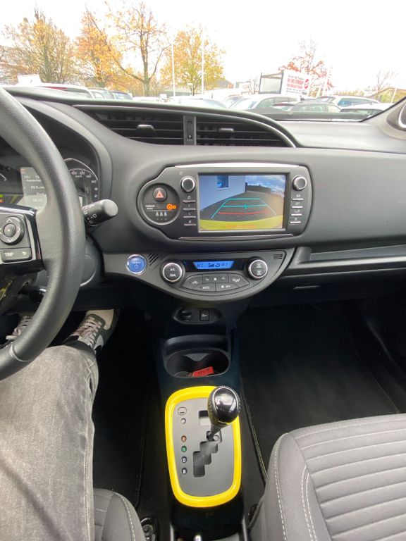 3. Bremsleuchte, Airbag Fahrer-/Beifahrerseite, Aktive Kopfstützen vorn, Audiosystem: Multimedia Toyota Touch mit Rückfahrkamera, Außenspiegel elektr. anklappbar, Außenspiegel elektr. verstell- und heizbar, Außenspiegel Kontrastfarbe, Chromeinfassung für Nebelscheinwerfer, DAB-Tuner (Radioempfang digital), Dach in Kontrastfarbe, Elektromotor 45 kW (Hybridantrieb), Fahrassistenz-System: Berganfahrkontrolle (HAC), Fensterheber elektrisch vorn + hinten, Handbremshebelgriff Leder, Heckleuchten LED, Heckscheibenwischer, Heckspoiler, Innenausstattung: Dekoreinlagen farbig, Innenspiegel mit Abblendautomatik, Isofix-Aufnahmen für Kindersitz, Karosserie: 5-türig, Klimaautomatik, Knieairbag Fahrerseite, Kopf-Airbag-System, Kühlergrill im Wabendesign, Kühlergrill schwarz, Lenkrad (Sport/Leder), Lenksäule (Lenkrad) verstellbar, LM-Felgen, Metallic-Lackierung, Mittelarmlehne vorn, Modellpflege, Motor 1,5 Ltr. - 55 kW 16V Hybrid, Multi-Funktions-Display (TFT), Projektor-Scheinwerfer, Reifen-Reparaturkit, Rücksitz geteilt, Rücksitz klappbar, Schadstoffarm nach Abgasnorm Euro 6, Schalt-/Wählhebelgriff Leder, Schleudertrauma-Schutzsystem, Seitenairbag, Seitenschutzleisten Piano Black, Sonnenblenden mit Make-up-Spiegel, Toyota Safety Sense, Türgriffe außen Wagenfarbe, Türverkleidungen vorn mit Softtouch-Elementen, Verglasung hinten abgedunkelt