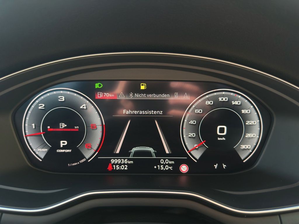 Sonderausstattung:Ablage- und Gepäckraum-Paket, Assistenz-Paket Parken, Bluetooth-Freisprecheinrichtung mit Spracherkennung (Audi Phone Box), Bremssättel Rot lackiert, Business-Paket, Fahrassistenz-System: Parklenkassistent, Fahrassistenz-System: Spurhalteassistent (active lane assist), Fahrassistenz-System: Verkehrszeichenerkennung, Fahrwerk mit Dämpferregelung (Magnetic Ride), Fondsitzanlage (3 Sitzplätze), Gepäckraumklappe elektr. betätigt (öffnen + schliessen), Harnstofftank (SCR): 24 Ltr., Head-up-Display, Innenausstattung: Interieurelemente in Kunstleder, Interieur-Paket S line, Isofix-Aufnahmen für Kindersitz an Beifahrersitz, Kamerasystem Umgebungsansicht (Top View), Kombiinstrument digital (virtual cockpit plus), Komfort-Klimaautomatik 3-Zonen, Komfort-Paket Sitze, Kontur / Ambientebeleuchtungs-Paket (plus), Lendenwirbelstützen vorn, pneumatisch verstellbar, mit Massagefunktion, Lenkrad (Sport/Leder - 3-Speichen, unten abgeflacht) mit Multifunktion und Schaltfunktion, Matrix-LED-Scheinwerfer mit Laserlicht, Sitzbezug / Polsterung: Leder Feinnappa mit Logo-Prägung in Vordersitzlehnen, Sitze vorn elektr. verstellbar, Sonderlackierung Daytonagrau Perleffekt, Sound-System Bang & Olufsen