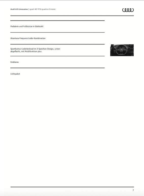 Fahrzeugdetails:Modell: Audi A3 Limousine Sport 40 TFSI quattro S tronic