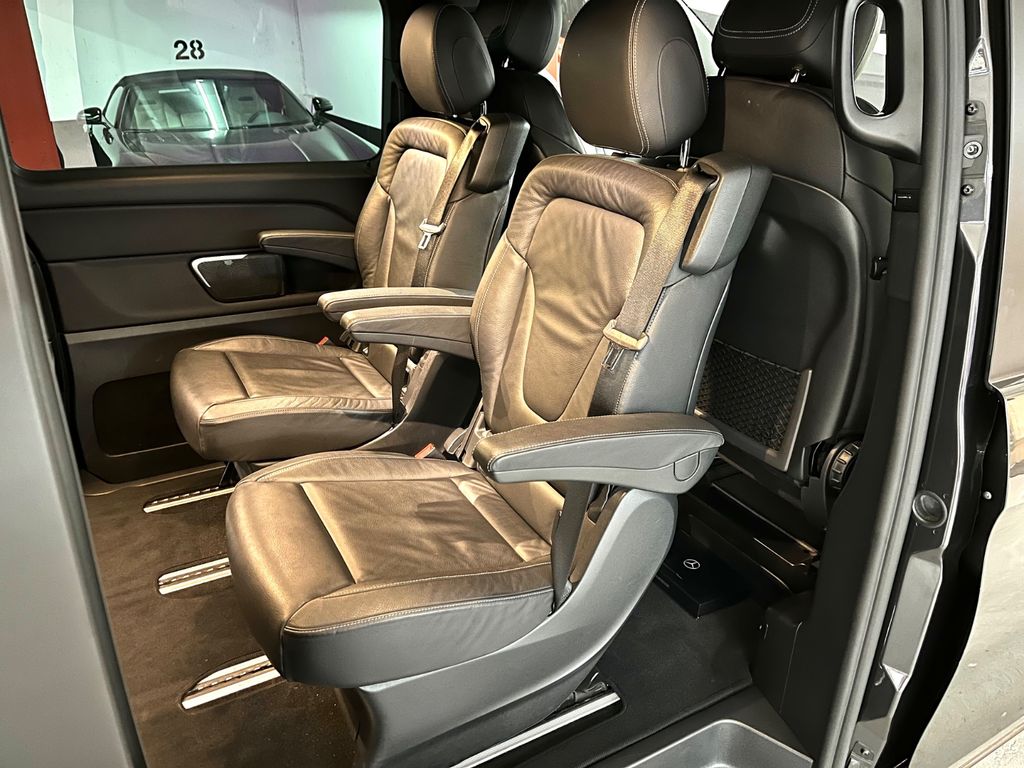 Sonderausstattung:Akustik-Paket, Ambiente-Beleuchtung Armaturentafel, Anhängelast 2500 kg, Dachreling (Aluminium eloxiert), Dachverkleidung / Innenhimmel Stoff schwarz, Design-Paket Interieur, Fahrassistenz-System: aktiver Bremsassistent, Fahrassistenz-System: Fernlichtassistent Plus, Fahrassistenz-System: Verkehrs-Informations-System Live Traffic, Fahrassistenz-System: Verkehrszeichenerkennung, Fahrwerks-Dämpfungssystem Agility Control, Fußmatten Velours, Gepäcksicherungsnetz, Heckklappe mit automatischem Öffnungs- und Schließsystem, Heckscheibe aufstellbar, Hold-Funktion, Innenausstattung: Zierteile Doppelstreifen Optik, Innenraumlicht-Paket, Intelligent Light System LED, Komfort-Klimaautomatik Thermotronik, Kraftstofftank: vergrößert, LM-Felgen 7x17 (Aero-Rad), Multimediasystem MBUX (Touchscreen 10,25"), Navigationssystem für Multimediasystem MBUX, Scheibenwaschanlage beheizt, Schiebetür Lade-/Fahrgastraum links, Schiebetür links elektrisch, Schiebetür rechts elektrisch, Sitze im Fahrerhaus: Fahrersitz mit Lendenwirbelstütze, Smartphone-Integration (Apple CarPlay und Android Auto), Surround-System Burmester, Vorbereitung Navigationssystem (für Multimediasystem MBUX)