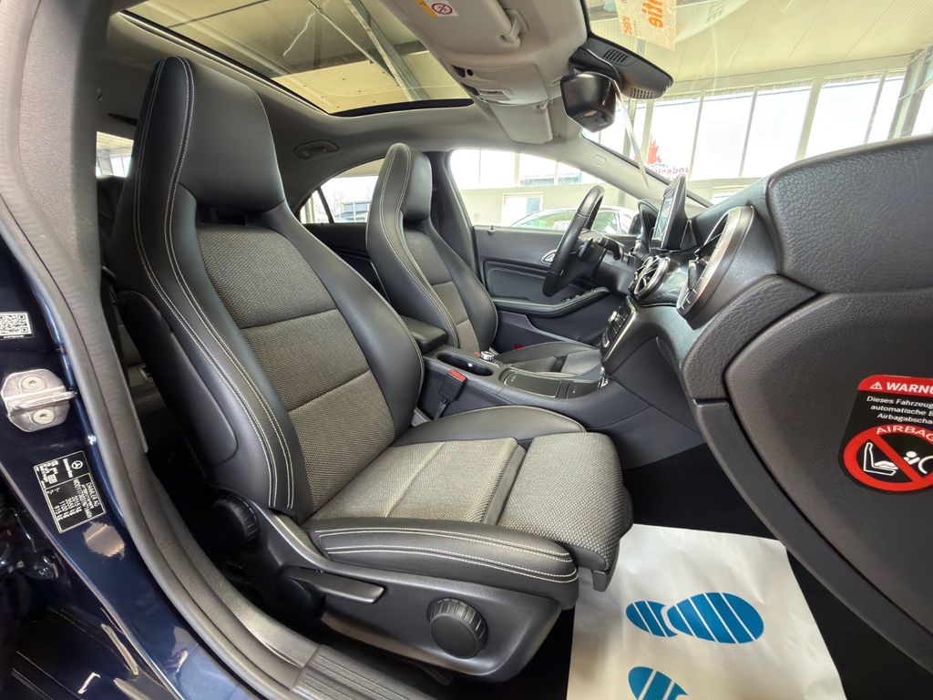 Mit großer Freude bieten wir Ihnen diesen tollen Garagenwagen an. Entdecken Sie diesen gepflegten Mercedes-Benz CLA 220 Sportcoupé aus dem Jahr 2018. Der Diesel-Motor mit 170 PS und Frontantrieb bietet sportliche Fahrleistungen bei gleichzeitig wirtschaftlichem Verbrauch. Das Automatikgetriebe sorgt für komfortables Fahren in jeder Situation. Die blaue Metallic-Lackierung in Kombination mit dem schwarzen Teilledersitzbezug verleiht dem Fahrzeug eine elegante Optik. Mit nur zwei Vorbesitzern und lückenloser Servicehistorie ist dieser CLA 220 ein zuverlässiger Begleiter.Die umfangreiche Ausstattung umfasst ein Panorama-Glasdach, LED-Scheinwerfer, adaptives Kurvenlicht und eine Ambientbeleuchtung. Für Sicherheit sorgen Front-, Seiten- und weitere Airbags, ESP, Kollisionsvermeidungssystem und Müdigkeitserkennung. Das Sportpaket mit Sportsitzen und Schaltwippen am Lenkrad unterstreicht den dynamischen Charakter dieses Fahrzeugs.