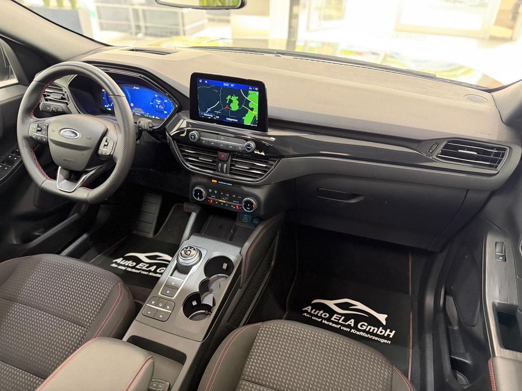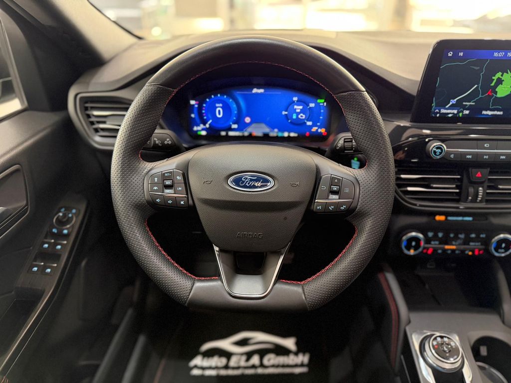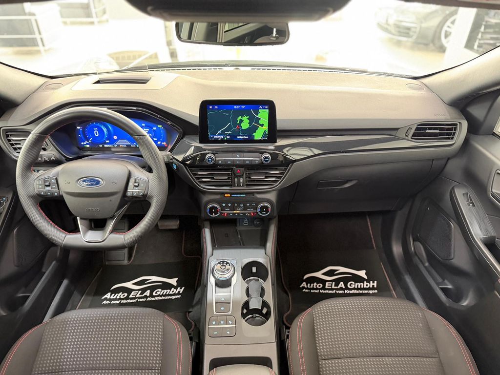 Akustischer Fußgängerschutz (Außensound, AVAS), Ambiente-Beleuchtung vorn (LED), Antischlupfregelung (ASR), Audio-Navigationssystem Ford mit AppLink, Außenspiegel elektr. anklappbar, Außenspiegel elektr. verstell- und heizbar, Body-Styling-Paket, Bordcomputer, Dachhimmel Stoff, dunkel, Dachreling schwarz, Dachspoiler Wagenfarbe, Doppelendrohr Auspuffanlage, Eco-Anzeige für verbrauchsoptimiertes Fahren (EcoCoach), Elektromotor 97 kW (Hybridantrieb), Fahrassistenz-System: Notbrems-Assistent, Fahrassistenz-System: Post-Collision-System, Fahrassistenz-System: Pre-Collision-System, Fahrassistenz-System: Spurhalteassistent, Fensterheber elektrisch vorn + hinten mit Komfortschließung, FordPass Connect inkl. eCall, Fußmatten ST-Design, Gepäckraumabdeckung / Rollo, Getriebe Automatik - ECVT, Heckleuchten LED, Hybrid 165 kW (Motor 2,5 Ltr. - 112 kW), Induktionsladeschale für mobile Endgeräte, Innenspiegel mit Abblendautomatik, Intelligent Protection System (IPS), Isofix-Aufnahmen für Kindersitz, Karosserie: 5-türig, Klimaautomatik 2-Zonen, Kombiinstrument Digitalanzeige 12,3 Zoll, Kopfstützen vorn 4-fach verstellbar, Ladekabel mit Schukostecker, Lenkrad (Sport/Leder, ST), Lenksäule (Lenkrad) höhen-/längsverstellbar, LM-Felgen, My Key (2. Fahrzeugschlüssel programmierbar), Parkbremse elektrisch mit Auto-Hold-Funktion, Parkpilotsystem vorn und hinten, Radstand 2710 mm, Reifen-Reparaturkit, Reifendruck-Kontrollsystem, Rücksitzlehne geteilt, Rücksitzlehne klappbar, Schadstoffarm nach Abgasnorm Euro 6d, Schalt-/Wählhebelgriff Aluminium, Scheibenrahmen schwarz, Scheinwerfer mit Ausschaltverzögerung, Scheinwerfer-Assistent mit Tag-/Nachtsensor, Sitz vorn links verstellbar (8-fach), Sitz vorn rechts verstellbar (8-fach), Sitzheizung vorn, Sonnenblende links mit Spiegel (beleuchtet), Sonnenblende rechts mit Spiegel (beleuchtet), Spezialausführung 2, Sport-Fahrwerk, Sportsitze