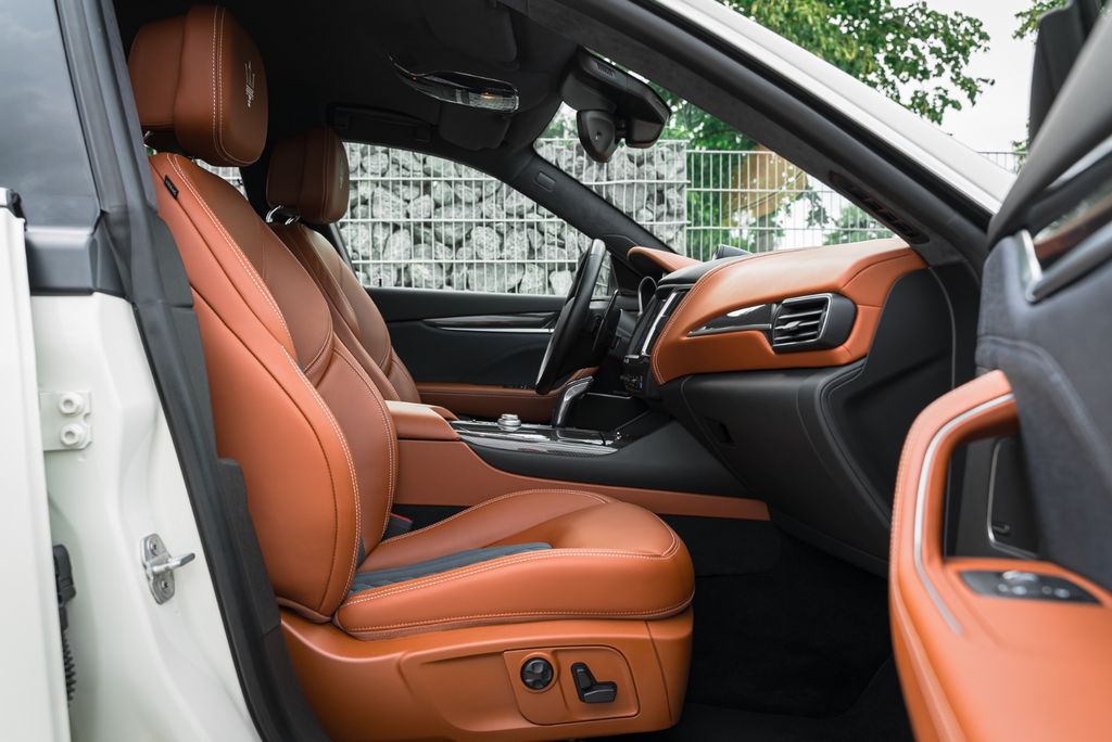 Erleben Sie italienischen Luxus und Leistung mit diesem gebrauchten Maserati Levante SUV. Dieses 2019 erstregistrierte Fahrzeug in metallischem Weiß mit brauner Lederausstattung vereint Eleganz und Kraft. Der leistungsstarke Motor mit 430 PS und Allradantrieb bietet beeindruckende Fahrdynamik, während das Sportpaket und die Luftfederung für optimales Handling sorgen. Die Automatik-Klimaanlage mit 2-Zonen-Regelung, beheizte und belüftete Sitze sowie das Navigationssystem garantieren höchsten Komfort. Mit nur zwei Vorbesitzern, Präsentiert sich dieser Levante in ausgezeichnetem Zustand.- 430 PS starker Benzinmotor mit Automatikgetriebe und Allradantrieb