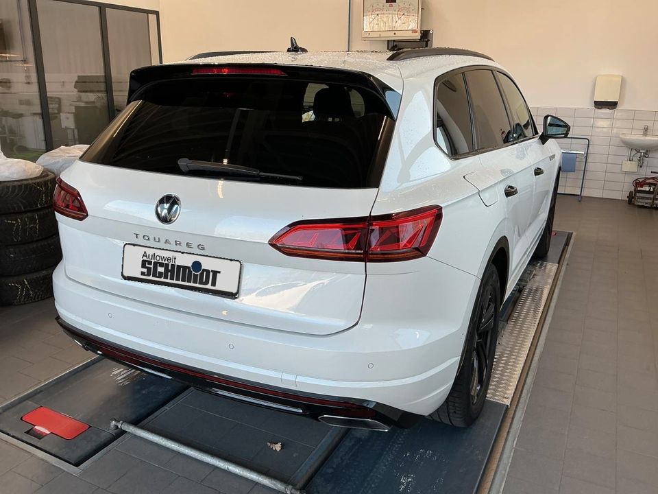 Adaptivfahrwerk mit aktiver Wankstabilisierung, Innovision Cockpit, Fahrerassistenzpaket 'Plus', IQ.LIGHT - LED-Matrix-Scheinwerfer, Perlmutteffekt-Lackierung, Panorama-Ausstell-/Schiebedach mit Panoramadach hinten, 21'-Leichtmetallräder 'Suzuka' Volkswagen R in Schwarz, Reifen 285/40 R 21, Head-up-Display, Anhängevorrichtung elektrisch anklappbar inkl. Anhängerrangierassistent 'Trailer Assist', Memory-Paket 'Premium', Vordersitze mit aktiver Klimatisierung, Klimaanlage 'Air Care Climatronic' mit 4-Zonen-Klimatisierung und Bedienungselementen hinten, Parklenkassistent 'Park Assist' und Rückfahrkamera 'Rear View', Connectivity-Paket inkl. Telefonschnittstelle, Knie-Airbag auf Fahrer- und Beifahrerseite, Seitenairbags für äußere Rücksitze, App-Connect und Volkswagen Media Control, Ambientepaket für R-Line, Dachreling schwarz, Scheinwerfer-Reinigungsanlage, Komfortpaket 'Keyless Access', Radsicherungen mit erweitertem Diebstahlschutz, Standheizung und -lüftung mit Funkfernbedienung und Vorwahluhr, Seitenscheiben hinten und Heckscheibe abgedunkelt