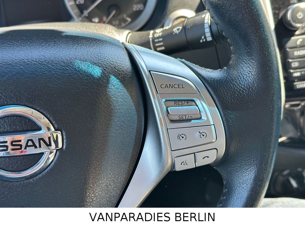 6 Lautsprecher, Airbag Beifahrerseite abschaltbar, Airbag Fahrer-/Beifahrerseite, Audiobedienung am Lenkrad, Audiosystem: Radio mit CD- und MP3-Player, Automatische Fahrlichtschaltung, Außenspiegel elektr. anklappbar, Außenspiegel elektr. verstellbar, Außenspiegel heizbar, Außenspiegel mit Chromblende, Außentemperaturanzeige, Bremsassistent (Nissan Brake-Assist), Chromeinfassung für Nebelscheinwerfer, Coming-Home-Lichtfunktion (Friendly Lightning), Differentialsperre mit begrenztem Schlupf, Fahrassistenz-System: Autonomer Notbrems-Assistent, Fahrassistenz-System: Bergabfahr-Assistent, Fahrassistenz-System: Berganfahr-Assistent, Fahrer-Informations-System (FIS) mit Farbdisplay, Fensterheber elektrisch hinten, Freisprechanlage Bluetooth, Frontscheibe mit Bandfilter oben, Gurtstraffer, Heckscheibe heizbar, Innenspiegel mit Abblendautomatik, Isofix-Aufnahmen für Kindersitz, Karosserie/Aufbau: Doppelkabine (Double-Cab), Karosserie/Aufbau: Pick-Up, Klimaautomatik 2-Zonen, Knieairbag Fahrerseite, Kopf-Airbag-System, Kopfstützen hinten, Lenksäule (Lenkrad) verstellbar, LM-Felgen, Motor 2,3 Ltr. - 140 kW dCi Diesel KAT, Radstand 3150 mm, Reserverad in Fahrbereifung, Rückfahrkamera mit integriertem Farbmonitor im Rückspiegel, Schadstoffarm nach Abgasnorm Euro 6, Scheibenwischer mit Intervallschaltung, Schienensystem Lastenverankerung, Schmutzfänger hinten, Schmutzfänger vorn, Seitenairbag, Sitz vorn links höhenverstellbar, Sitzbezug / Polsterung: Stoff, Sitzheizung vorn, Start-Stop-Knopf, Start/Stop-Anlage, Steckdose (12V-Anschluß), Stoßfänger hinten verchromt, Stoßfänger vorn Wagenfarbe, Trittbretter seitlich, USB-Schnittstelle, Verglasung hinten abgedunkelt