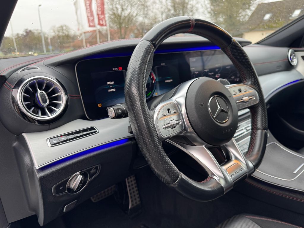 Airbag Fahrer-/Beifahrerseite, Ambiente-Beleuchtung (erweiterter Umfang), AMG-Optic-/Styling-Paket 1, Armaturentafel Oberteil in Ledernachbildung Artico, Außenspiegel schwarz lackiert, Beckenairbag vorn (Pelvisbag), Brillenfach im Dachhimmel integriert, Design- und Ausstattungslinie Standard, Elektromotor 16 kW (Hybridantrieb), Fahrassistenz-System: Agility Select / Dynamic Select (Fahrmodusschalter), Fahrassistenz-System: aktiver Bremsassistent, Fahrassistenz-System: aktiver Spurhalteassistent, Fahrassistenz-System: Geschwindigkeitslimit-Assistent, Fensterheber elektrisch vorn + hinten, Fußmatten AMG, Innenausstattung: Zierteile Aluminium Längsschliff, Isofix-Aufnahmen für Kindersitz an Rücksitz, Karosserie: 4-türig, Klimaautomatik (Thermatic), Knieairbag Fahrerseite, Kommunikationsmodul (LTE) Vorbereitung Mercedes me connect, Kopf-Airbag-System (Windowbag), Kühlergrill Diamant-Optik, Kühlerjalousie, regelbar (Airpanel), Lenkrad (Sport) mit Multifunktion, LM-Felgen, Mercedes-Benz Notrufsystem, Mild-Hybrid 336 kW (Motor 3,0 Ltr. - 320 kW), Motorhaube mit Powerdome, Otto-Partikelfilter (OPF), Reifendruck-Kontrollsystem, Schadstoffarm nach Abgasnorm Euro 6d-TEMP, Seitenairbag (Sidebag) vorn, Sitz-Komfort-Paket, Sitzbelegungserkennung für Airbag Beifahrerseite, Sitzbezug / Polsterung: Ledernachbildung Artico / Dinamica, Sitzheizung vorn, Sport-Auspuffanlage, Sport-Fahrwerk (AMG Ride Control +), Verkleidung / Spoiler hinten (AMG)