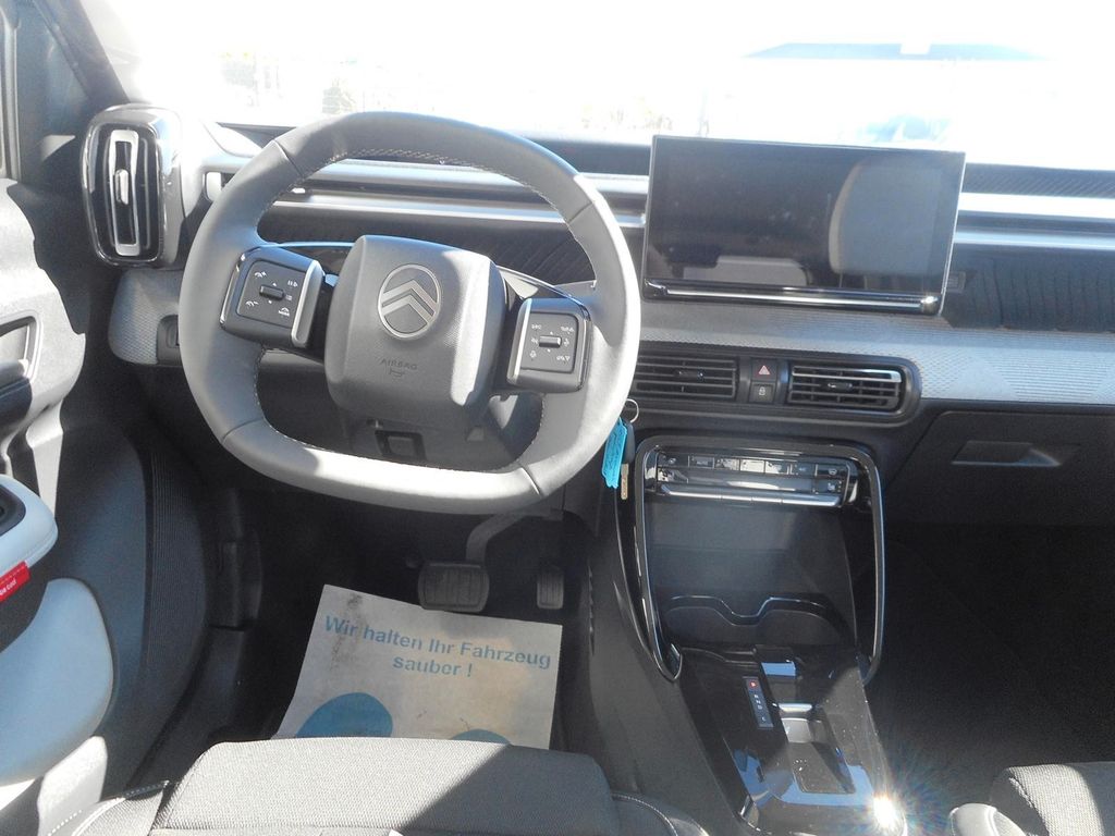 Airbag Beifahrerseite abschaltbar, Airbag Fahrer-/Beifahrerseite, Kopf-Airbag-System und Seitenairbag, Akustischer Fußgängerschutz (Außensound), Audio-Navigationssystem: MyCitroen Drive, Außenausstattung: Farbclips in Rot, Außenspiegel elektr. verstell-, heiz- und anklappbar, Außenspiegel mit Abdeckkappen schwarz, Bremsenergierückgewinnung, Citroen Advanced Comfort Sitze, Comfort Federung (Citroen Advanced), Dachfarbe Perla-Nera-Schwarz, Dachreling schwarz, Einparkhilfe hinten mit Parksensoren seitlich, Einschaltautomatik für Fahrlicht, Elektromotor 83 kW (cont. 53 kW), Fahrmodusschalter, Fensterheber elektrisch hinten, Fußmatten, Head-up-Display (Kombiinstrument hochgesetzt), Heckleuchten LED, 3D-Optik, Heckscheibe heizbar, Heckscheibenwischer, HV-Batterie 44 kWh (Lithium-Eisen-Phosphat), Induktionsladeschale für Smartphone (Wireless Charging), Innenausstattung: Ambiente Metropolitan Grey, Innenspiegel mit Abblendautomatik, Isofix-Aufnahmen für Kindersitz an Rücksitz, Karosserie: 5-türig, Klimaautomatik, Koffer-/Laderaumboden variabel (Moduboard), Lenksäule (Lenkrad) mech. höhen-/längsverstellbar, LM-Felgen, Notbrems-Warnblinkautomatik, Paketkombination: Sicherheit und Totwinkel-Assistent, Parkbremse elektrisch, Radstand 2670 mm, Rücksitzlehne geteilt/klappbar 1/3-2/3, Seitenscheiben hinten und Heckscheibe dunkel getönt, Sitz vorn links höhenverstellbar, Sitzbezug / Polsterung: Stoff/Kunstleder, Sonderlackierung Montecarlo-Blau, Steckdose (12V-Anschluß) in Mittelkonsole vorn, USB-/Audio-Schnittstelle (Typ C, 2-fach), USB-Anschluss (Typ C, 2-fach), Innenspiegel automatisch abblendend, Regensensor, Seitenscheiben hinten und Heckscheibe abgedunkelt