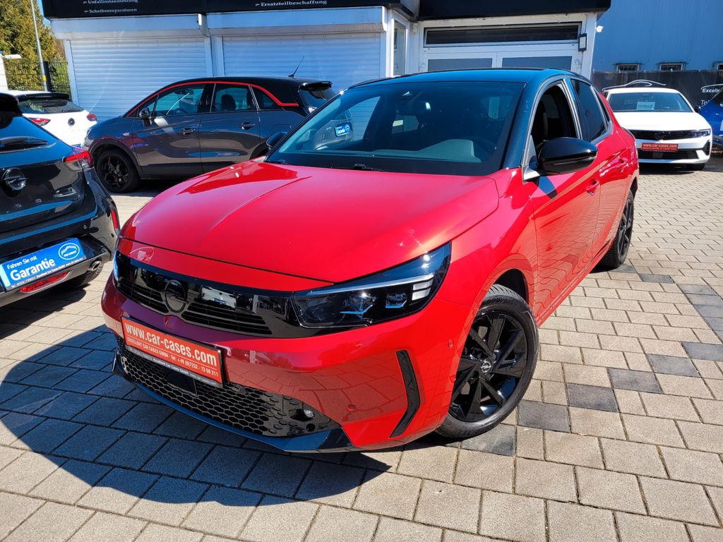6 Lautsprecher, Airbag Fahrer-/Beifahrerseite, Außenspiegel elektr. verstell- und heizbar, elektr. anklappbar, B-Säulen schwarz Hochglanz (außen), Bordcomputer, Bremsassistent, Dach Kontrast-Lackierung, Dachhimmel schwarz, Einparkhilfe vorn und hinten mit Parksensoren seitlich, Elektron. Stabilitäts-Programm Plus (ESP), Fahrassistenz-System: Berganfahr-Assistent (HSA, Hill Start Assist), Fahrassistenz-System: Müdigkeitserkennungs-Sensor, Fahrassistenz-System: Spurhalteassistent, Fahrassistenz-System: Totwinkel-Assistent, Fahrassistenz-System: Verkehrszeichenerkennung, Farbdisplay (7 Zoll), Fensterheber elektrisch vorn + hinten, Fensterheber vorn elektr. mit Einklemmschutz, Gepäckraumbeleuchtung (LED), Geschwindigkeits-Regelanlage (Tempomat) inkl. Geschwindigkeits-Begrenzeranlage, Heckleuchten LED, Heckscheibenwischer, Innenausstattung: Dekorleisten Rot, Isofix-Aufnahmen für Kindersitz an Beifahrersitz, Isofix-Aufnahmen für Kindersitz an Rücksitz, Karosserie: 5-türig, Kopf-Airbag-System, Kraftstofftank 44 Ltr., Lenkrad (Leder, vegan) mit Multifunktion, Lenksäule (Lenkrad) verstellbar, Leseleuchten vorn (2), Mittelarmlehne vorn mit Ablagefach, Modellpflege, Motor 1,2 Ltr. - 74 kW, Nebelschlussleuchte, Opel Connect, Otto-Partikelfilter (OPF), Parkpilotsystem vorn und hinten, Reifen-Reparaturkit, RückfahrkameraUmgebungsansicht, Rücksitzbank geteilt/klappbar (60:40), Schadstoffarm nach Abgasnorm Euro 6e, Scheinwerfer LED, Seitenairbag vorn, Sicht-Paket, Sitzbezug / Polsterung: Stoff, Sportsitze vorn, Stoßfänger Sport-Design, Stoßfänger Wagenfarbe, Türgriffe außen Wagenfarbe, Türgriffe innen verchromt, Warnanlage für Sicherheitsgurt, Beifahrerseite, Warnanlage für Sicherheitsgurt, Fahrerseite, Warnanlage für Sicherheitsgurte hinten