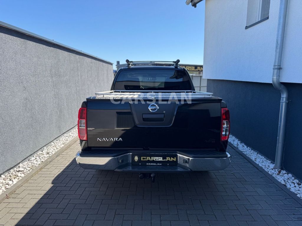 7 Lautsprecher, Airbag Fahrer-/Beifahrerseite, Aktive Kopfstützen vorn, Audio-/Radio-Fernbedienung am Lenkrad, Audiosystem: Radio mit CD- und MP3-Player, Automatische Fahrlichtschaltung, Außenspiegel elektr. anklappbar, Außenspiegel elektr. verstell- und heizbar, Außenspiegel mit Bodenbeleuchtung, Außenspiegel mit Chromblende, Außentemperaturanzeige, Blinkleuchte in Außenspiegel integriert, Bluetooth-Schnittstelle, Bordcomputer, Bremsassistent (Nissan Brake-Assist), Dachträger, Differentialsperre mit begrenztem Schlupf, Einstiegsleisten (Aluminium), Elektr. Bremskraftverteilung (EBD), Fensterheber elektrisch vorn + hinten, Flankenschutz, Freisprechanlage Bluetooth, Fußraumleuchte vorn, Getränkehalter in Mittelkonsole, Gurtstraffer, Handbremshebel Leder, Heckscheibe heizbar, Innenspiegel mit Abblendautomatik, Isofix-Aufnahmen für Kindersitz, Karosserie/Aufbau: Doppelkabine (Double-Cab), Karosserie/Aufbau: Ladefläche verlängert, Karosserie/Aufbau: Pick-Up, Klimaautomatik 2-Zonen, Kopf-Airbag-System, Kühlergrill verchromt, Lenksäule (Lenkrad) höhenverstellbar, LM-Felgen, Modellpflege, Motor 3,0 Ltr. - 170 kW V6 dCi KAT, Navigationssystem mit Festplattenspeicher und Spracherkennung, Radstand 3200 mm, Reserverad in Fahrbereifung, Rücksitz geteilt/klappbar, Schadstoffarm nach Abgasnorm Euro 5, Schalt-/Wählhebelgriff Leder, Seitenairbag, Sicherheitsgurte vorn höhenverstellbar, Sitzheizung vorn, Sonnenblenden mit Spiegel, Sound-System BOSE, Steckdose (12V-Anschluß) in Mittelkonsole, Stoßfänger hinten verchromt, Stoßfänger teilweise Wagenfarbe, Topline-Paket, Trittbretter seitlich, Türgriffe innen verchromt, Verglasung getönt, Verglasung hinten abgedunkelt, Wärmeschutzverglasung mit UV-Schutz