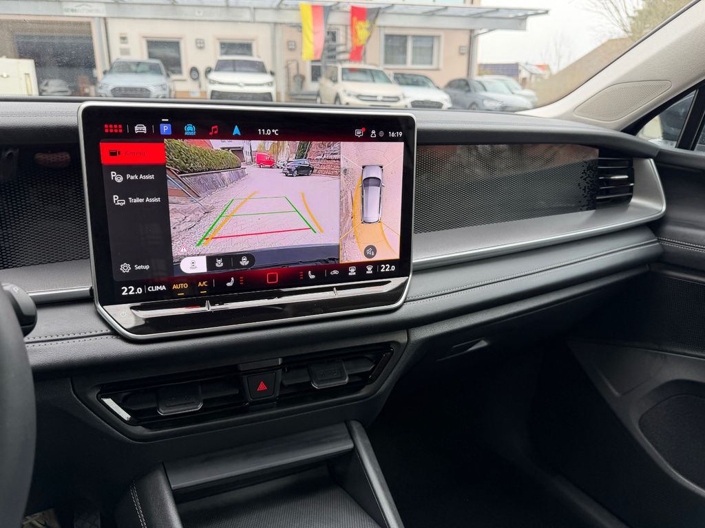 0TD Fussmatten; 1N7 Progressivlenkung; 1S2 Bordwerkzeug; 3H2 Beifahrersitzlehne umklappbar; 3L3 Vordersitze mit Höheneinstellung; 3S2 Dachreling schwarz; 4L6 Innenspiegel automatisch abblendend; 7K9 Reifenkontrollanzeige; 9S0 Digital Cockpit Pro mehrfarbig, verschiedene Profile wählbar; Abbiege- und Schlechtwetterlicht; Abbiegebremsfunktion und Ausweichunterstützung; Ablenkungs- und Müdigkeitserkennung; Adaptive Fahrwerksregelung DCC Pro inkl. Fahrprofilauswahl; Ambientebeleuchtung; App-Connect Wireless für Apple CarPlay und Android Auto; Außenspiegel elektrisch einstell-, anklapp- und beheizbar, mit Memory-Funktion; Automatische Distanzregulierung ACC "stop & go" mit Geschwindigkeitsbegrenzer; Diebstahlwarnanlage mit Innenraumüberwachung, Back-up-Horn und Abschleppschutz; Digitaler Radioempfang (DAB+); Elektronische Parkbremse inkl. Auto-Hold-Funktion; Fahrerlebnisschalter inkl. Innenraumerlebnis "Atmospheres"; Fahrlichtschaltung automatisch, mit LED-Tagfahrlicht sowie "Coming home"- und "Leaving home"-Funktion; Fernlichtassistent "Light Assist"; Fußgängerschutzmaßnahmen erweitert; Gepäckraumboden höheneinstellbar; ISOFIX-Halteösen für Kindersitze auf den äußeren Rücksitzen sowie auf dem Beifahrersitz, i-Size- kompatibel; KA2 Rückfahrkamera "Rear View"; Klimaanlage "Air Care Climatronic" mit Aktiv-Kombifilter, Bedienelementen hinten und 3-Zonen- Temperaturregelung; Komfortsitze vorn; Kreuzungsassistent; Lendenwirbelstützen vorn pneumatisch einstellbar; Make-up-Spiegel beleuchtet; Multifunktions-Sportlenkrad in Leder, mit Schaltwippen; Nichtraucherausführung - Ablagefach und 12-V-Steckdose vorn; Notbremsassistent "Front Assist" mit Fußgänger- und Radfahrererkennung; PAM Mittelarmlehne vorn; Parkassistent "Park Assist Plus" inkl. Einparkhilfe; Regensensor; Rücksitzbank asymmetrisch teilbar, längs verschieb- und klappbar mit Durchlademöglichkeit und Mittelarmlehne; Schlüsselloses Startsystem "Keyless Start" ohne SAFE-Verriegelung; Spurhalteassistent "Lane Assist"; Spurwechselassistent "Side Assist", Ausparkassistent und Ausstiegswarnung; Tire Mobility Set: 12-Volt-Kompressor und Reifendichtmittel; UG5 Berganfahr- und Bergabfahrassistent; Umfeldbeleuchtung mit Logoprojektion; WQ1 Verkehrszeichenerkennung