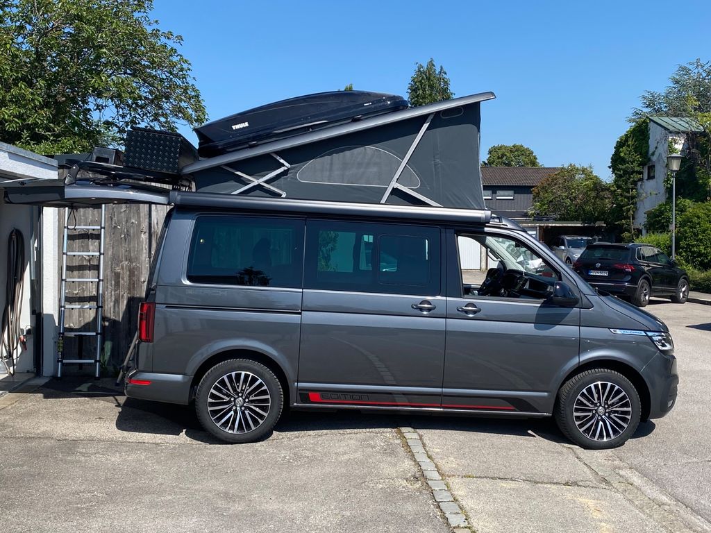Umfangreich ausgestatteter VW California T6.1 Beach Edition mit VB Luftfederung, zusätzliche Wegfahrsperre, Allrad, Heckküche, Heckbox, umfangreiches Zubehör welches gerne mit erworben werden kann.Akkustik- Dämmglaspaket