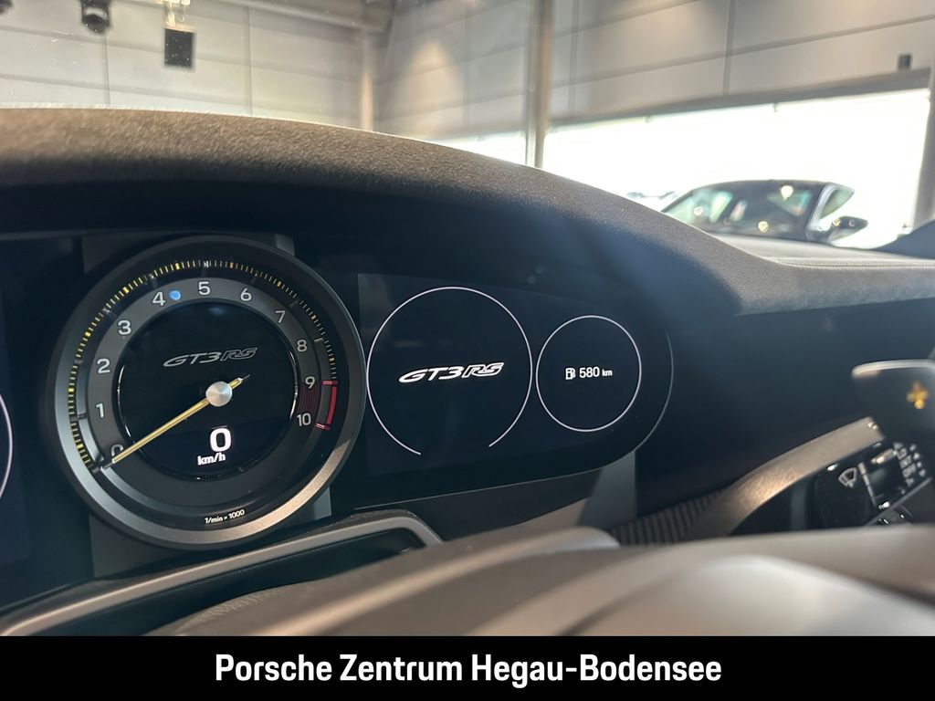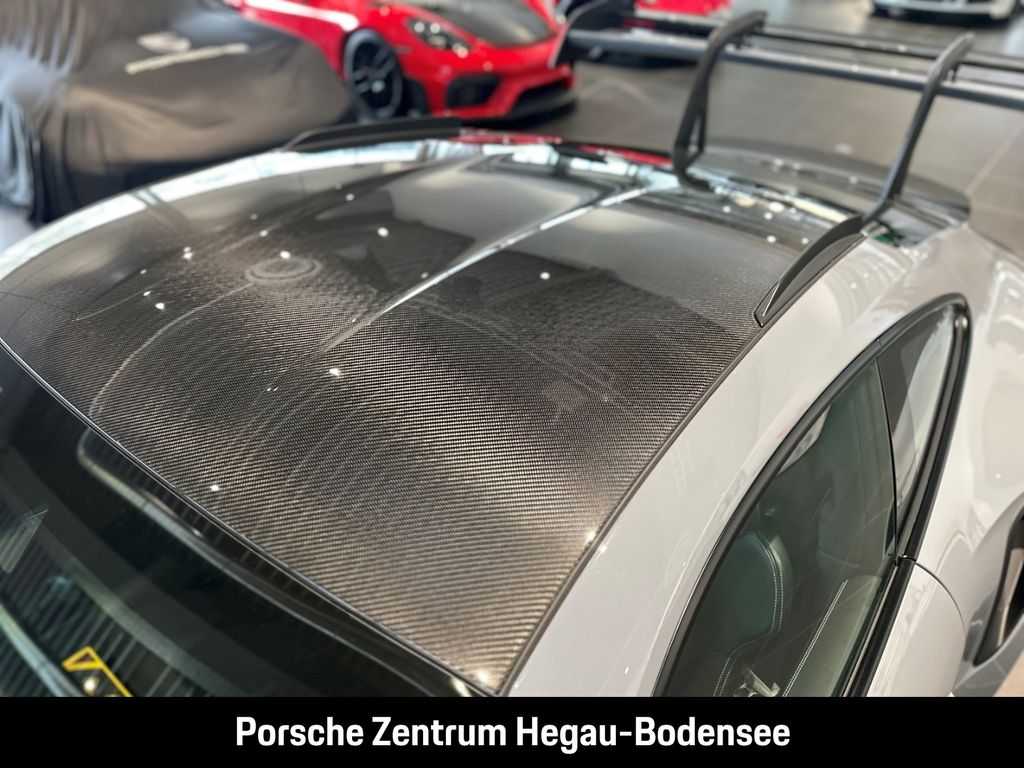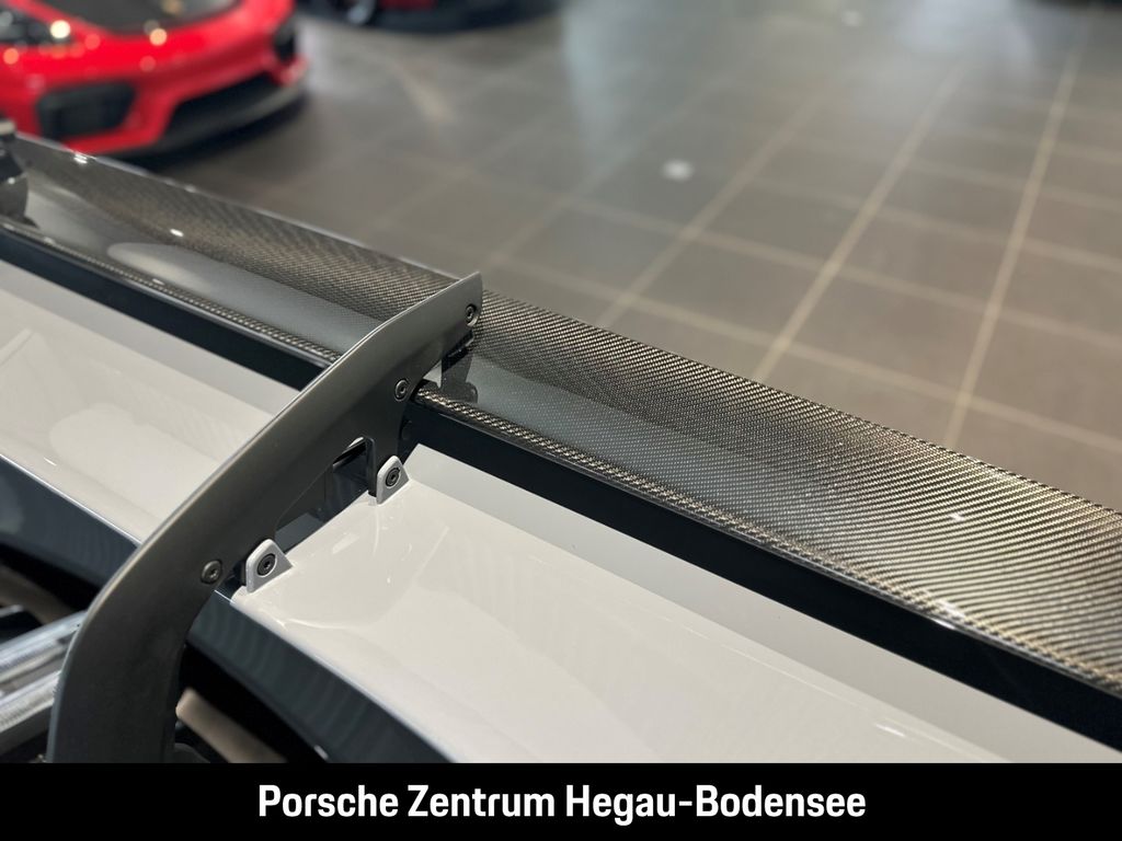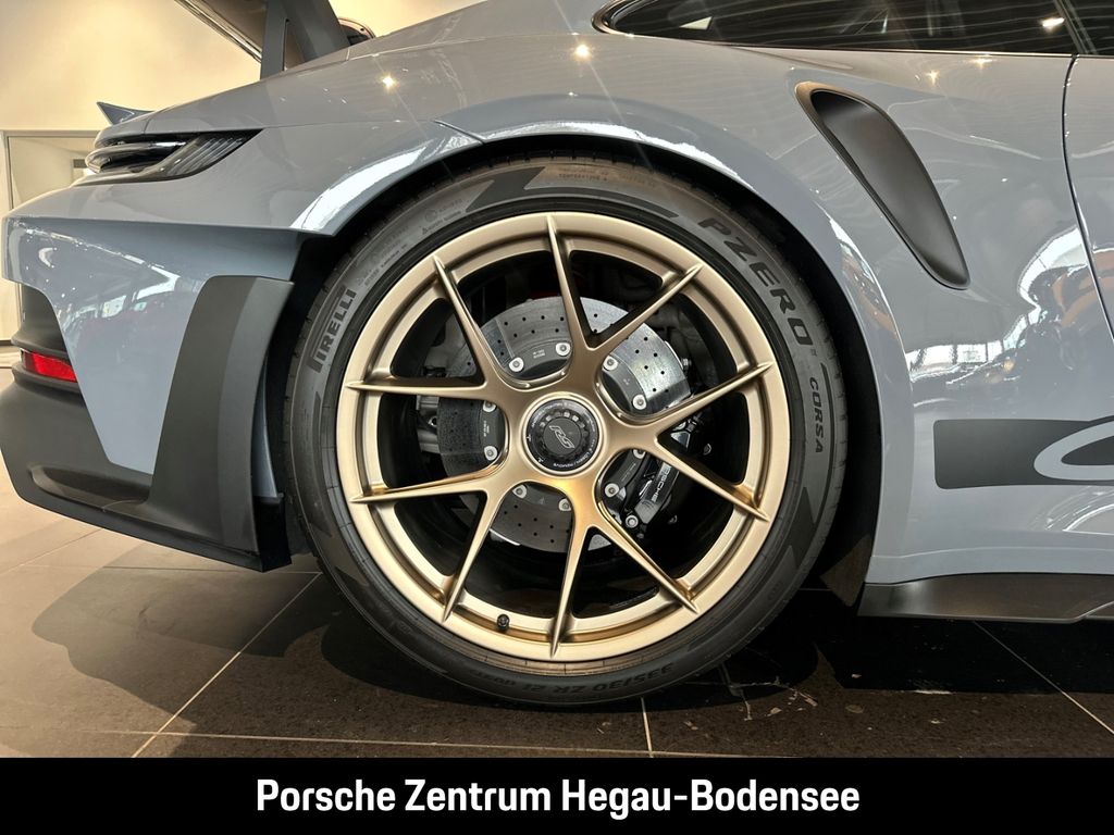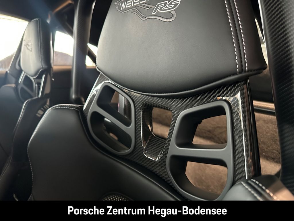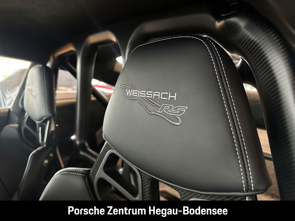 - Weiteres: (P70) Weissach-Paket ohne Überrollkäfig, (6A9) Clubsportpaket, (P70) Weissach-Paket, (UD1) LED-Türprojektoren „PORSCHE“ Schriftzug, (2UH) Liftsystem Vorderachse, (0I2) Kraftstofftank 90 l, (1LX) Porsche Ceramic Composite Brake (PCCB) mit Bremssätteln lackiert in Schwarz (hochglanz), (56R) 20-/21-Zoll GT3 RS Magnesium Leichtbau-Schmiederäder, (QQ2) Licht-Design-Paket, (2Y9) Überrollkäfig aus kohlefaserverstärktem Kunststoff, (7M8) Türeinstiegsblenden Carbon matt, beleuchtet, (9VL) BOSE® Surround Sound-System, (8JU) LED-Matrix Hauptscheinwerfer abgedunkelt inkl. Porsche Dynamic Light System Plus (PDLS Plus), (8VH) Exclusive Design Heckleuchten, (P14) Automatisch abblendende Innen-/Außenspiegel mit integriertem Regensensor, (KA2) ParkAssistent hinten inkl. Rückfahrkamera, (QR9) Verkehrszeichenerkennung, (8U7) Vorrüstung Porsche Dashcam