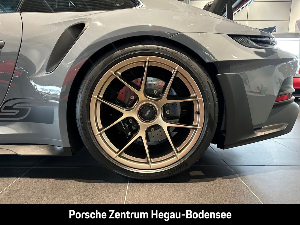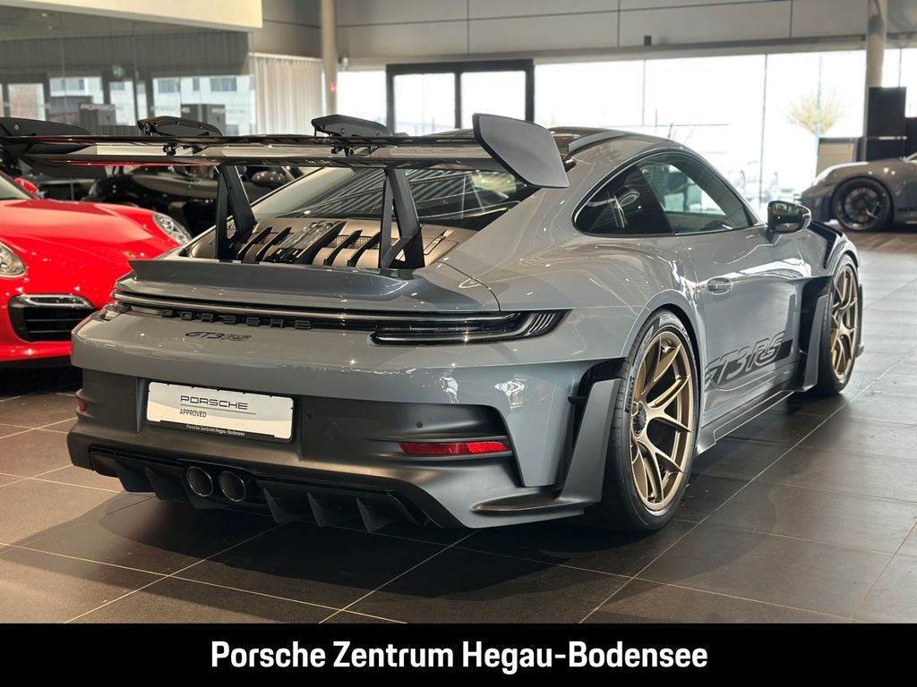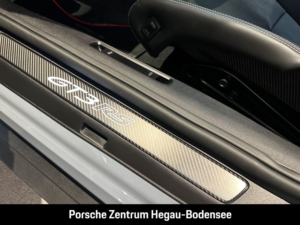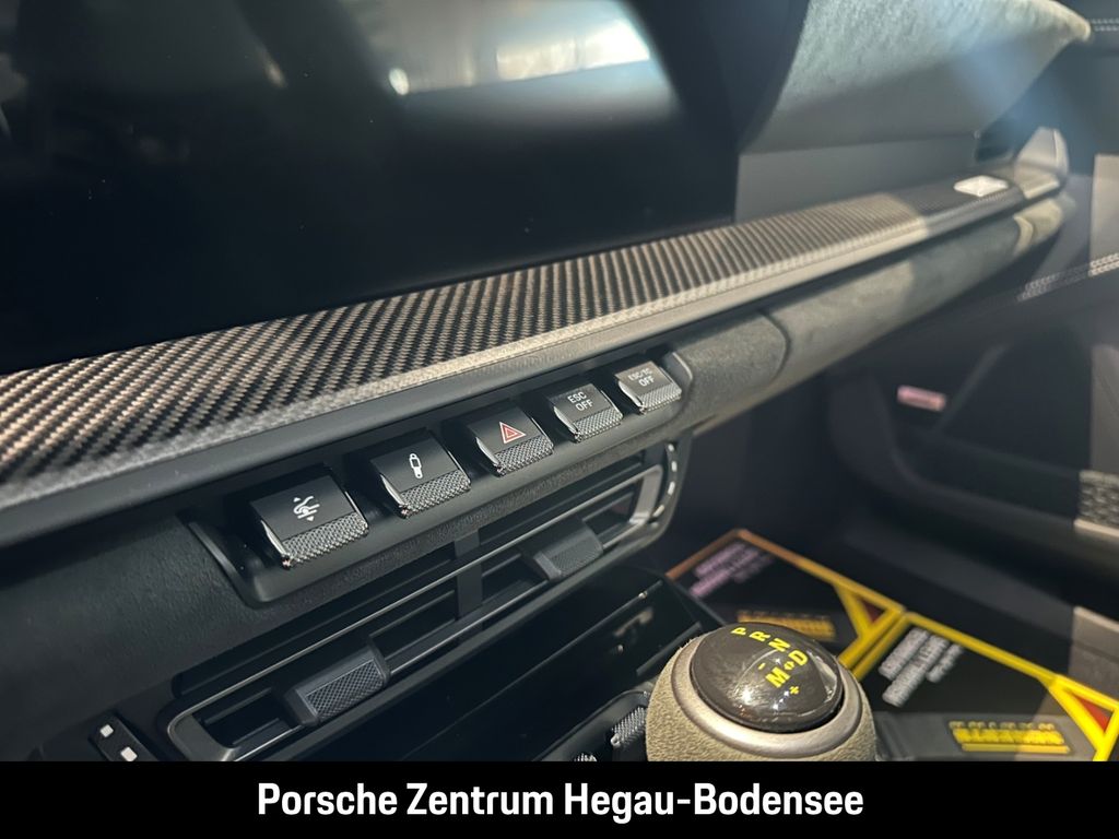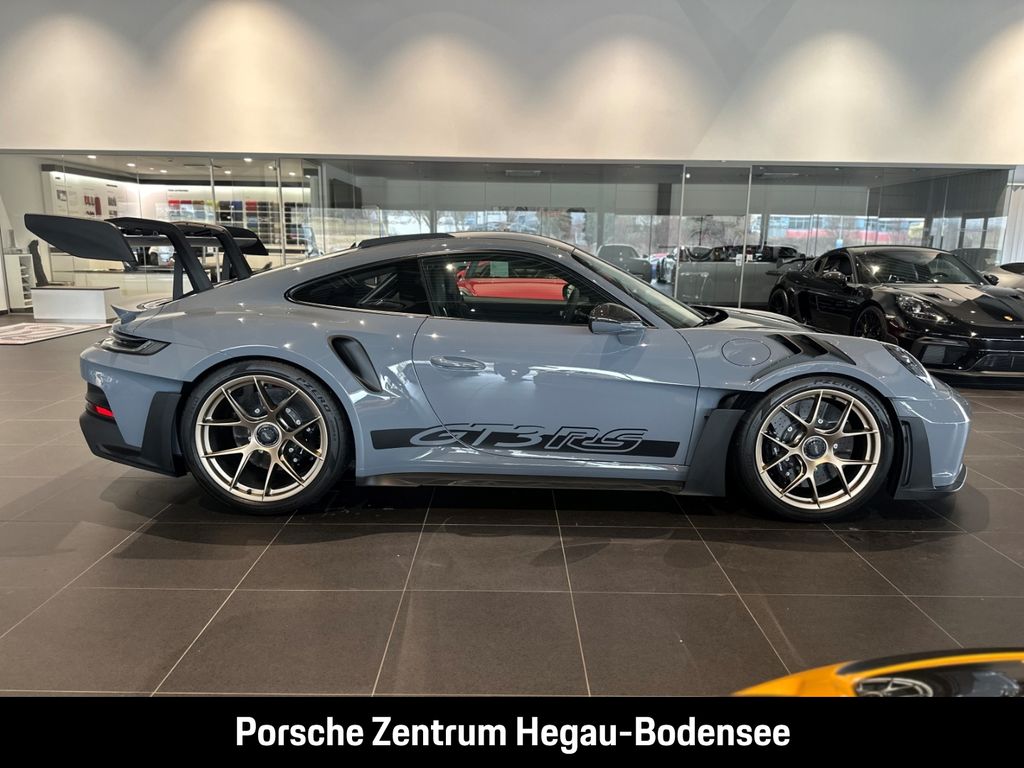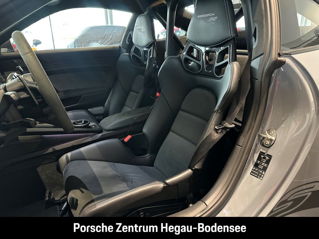 - Weiteres: (P70) Weissach-Paket ohne Überrollkäfig, (6A9) Clubsportpaket, (P70) Weissach-Paket, (UD1) LED-Türprojektoren „PORSCHE“ Schriftzug, (2UH) Liftsystem Vorderachse, (0I2) Kraftstofftank 90 l, (1LX) Porsche Ceramic Composite Brake (PCCB) mit Bremssätteln lackiert in Schwarz (hochglanz), (56R) 20-/21-Zoll GT3 RS Magnesium Leichtbau-Schmiederäder, (QQ2) Licht-Design-Paket, (2Y9) Überrollkäfig aus kohlefaserverstärktem Kunststoff, (7M8) Türeinstiegsblenden Carbon matt, beleuchtet, (9VL) BOSE® Surround Sound-System, (8JU) LED-Matrix Hauptscheinwerfer abgedunkelt inkl. Porsche Dynamic Light System Plus (PDLS Plus), (8VH) Exclusive Design Heckleuchten, (P14) Automatisch abblendende Innen-/Außenspiegel mit integriertem Regensensor, (KA2) ParkAssistent hinten inkl. Rückfahrkamera, (QR9) Verkehrszeichenerkennung, (8U7) Vorrüstung Porsche Dashcam